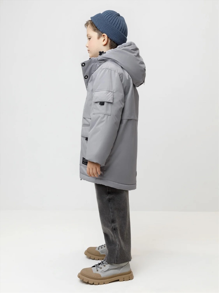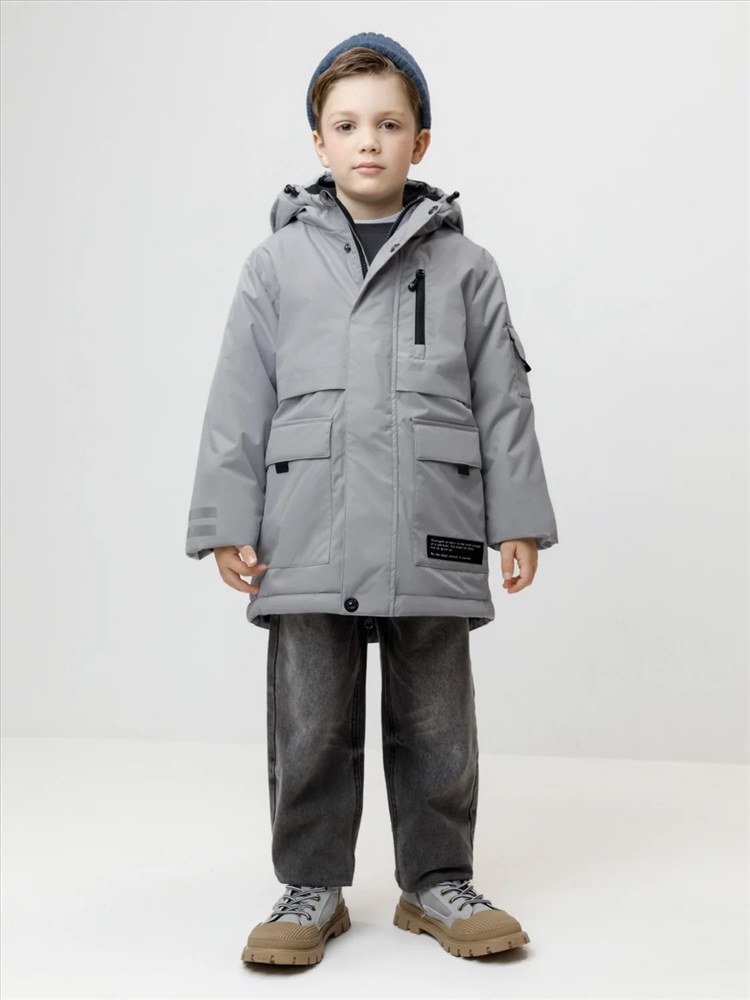 Зимняя куртка для мальчика с утеплителем SEE®: 250 г/м2. Выполнена из мембранной ткани с дополнительной тефлоновой обработкой, которая предохраняет изделие от загрязнений и отталкивает влагу. Подклад выполнен из 100% полиэстера Tricot. Куртка застёгивается на молнию и на дополнительную планку с кнопками. У изделия предусмотрена защита подбородка. Несъёмный капюшон имеет эластичную утяжку со стопперами, глубина капюшона регулируется при помощи липучки. На рукавах внутренние эластичные манжеты. Два накладных кармана с клапанами по бокам и один карман на груди. Во всех изделиях верхнего ассортимента для безопасности ребёнка предусмотрены светоотражающие элементы.