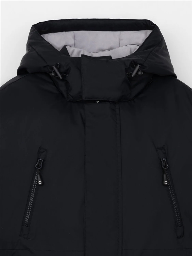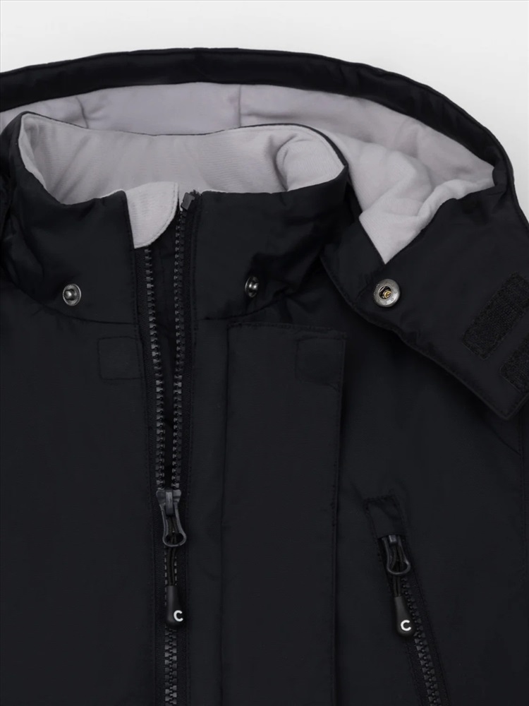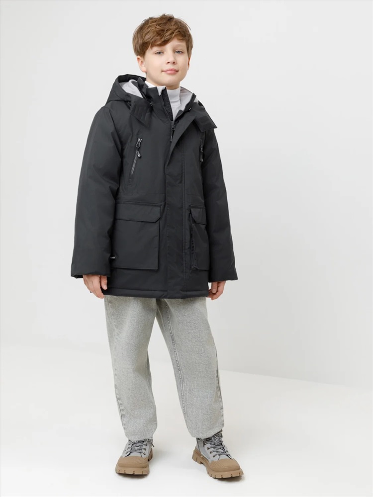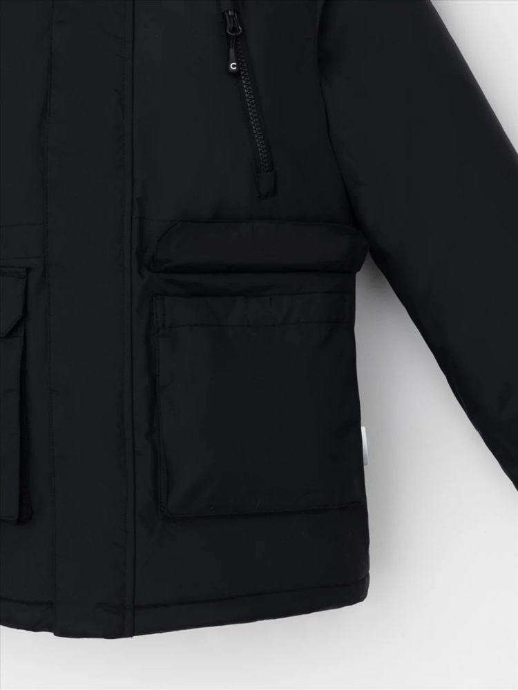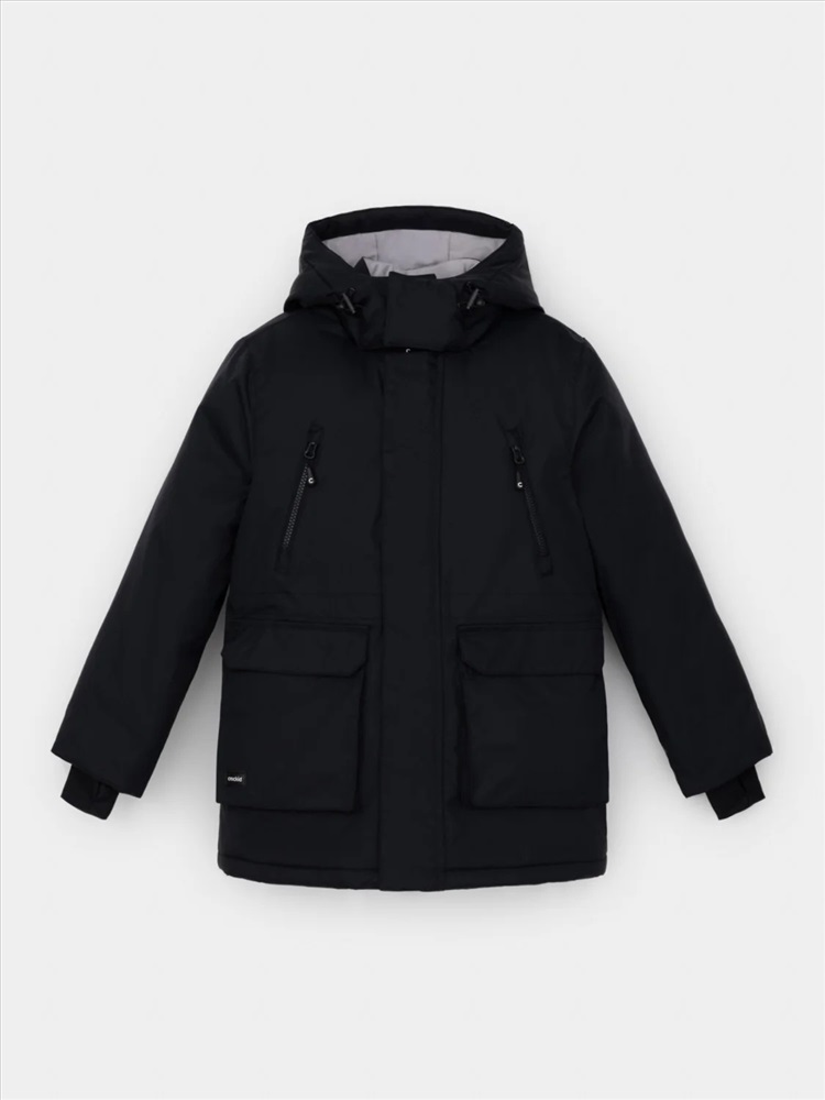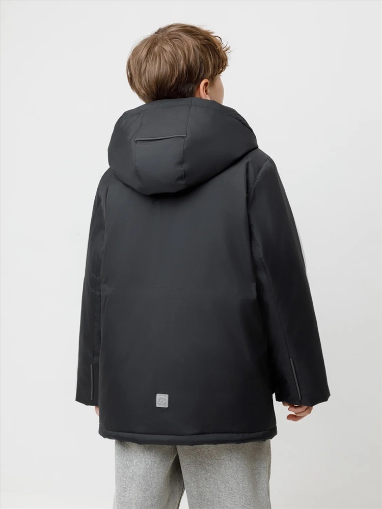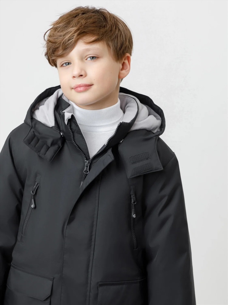 Зимняя куртка для мальчика с утеплителем SEE®: 250 г/м2. Выполнена из мембранной ткани с дополнительной тефлоновой обработкой, которая предохраняет изделие от загрязнений и отталкивает влагу. Подклад выполнен из 100% полиэстера Tricot. Куртка застёгивается на молнию и внешнюю планку с магнитными кнопками, предусмотрена защита подбородка. Съёмный капюшон на кнопках и липучках имеет эластичную утяжку со стопперами. На рукавах внутренние эластичные манжеты. Два накладных кармана с клапанами по бокам и два кармана с молниями на груди. По талии эластичная утяжка со стопперами. Во всех изделиях верхнего ассортимента для безопасности ребёнка предусмотрены светоотражающие элементы.