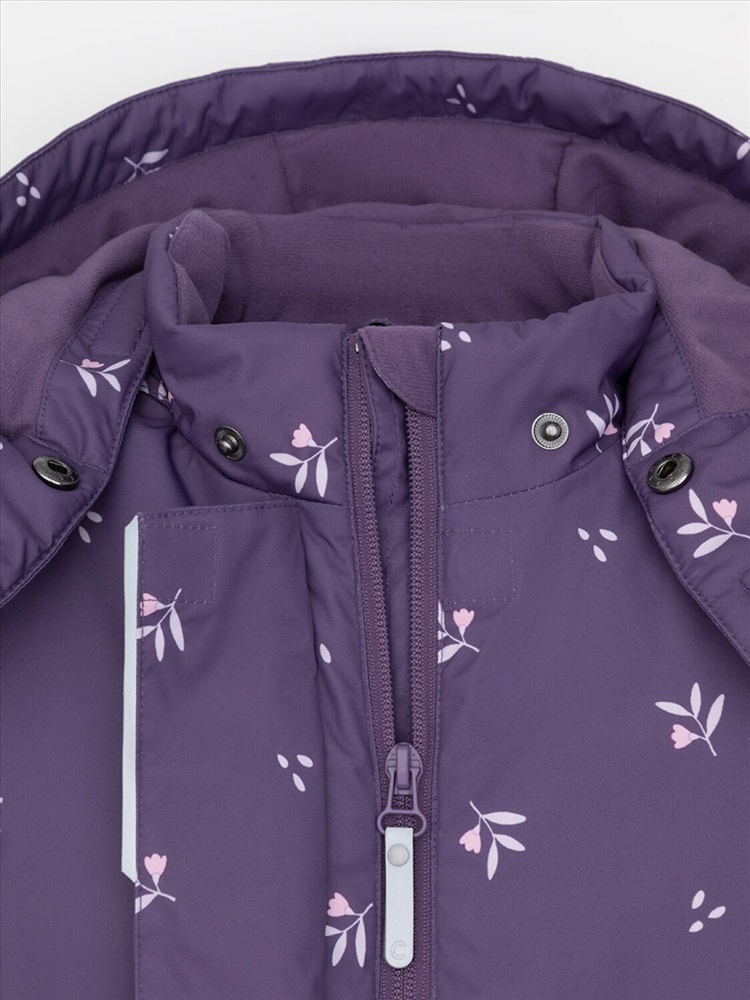 Зимняя куртка для девочки с утеплителем SEE®: 300 г/м2. Выполнена из мембранной ткани с дополнительной тефлоновой обработкой, которая предохраняет изделие от загрязнений и отталкивает влагу. Подклад выполнен из 100% полиэстера Tricot. Куртка застёгивается на молнию, предусмотрена защита подбородка. Съёмный капюшон на кнопках и липучках имеет эластичную утяжку со стопперами. На рукавах мягкие внутренние манжеты. По бокам два кармана с клапанами на кнопках. Изнутри кулиска по талии для регулировки ширины куртки. Во всех изделиях верхнего ассортимента для безопасности ребёнка предусмотрены светоотражающие элементы.