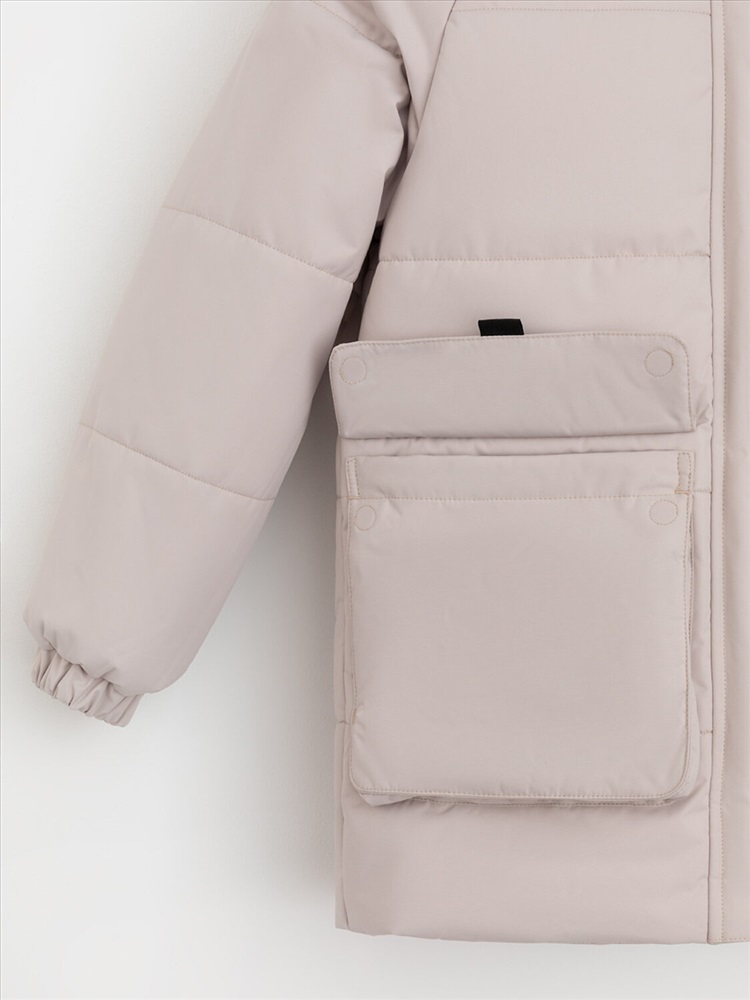 Зимняя куртка для девочки с утеплителем SEE®: 300 г/м2. Выполнена из мембранной ткани с дополнительной тефлоновой обработкой, которая предохраняет изделие от загрязнений и отталкивает влагу. Подклад выполнен из 100% полиэстера Tricot. куртка застёгивается на молнию, предусмотрена защита подбородка. Вшитый капюшон застёгивается на кнопки. На рукавах мягкие манжеты. По бокам два кармана с клапанами. Во всех изделиях верхнего ассортимента для безопасности ребёнка предусмотрены светоотражающие элементы.