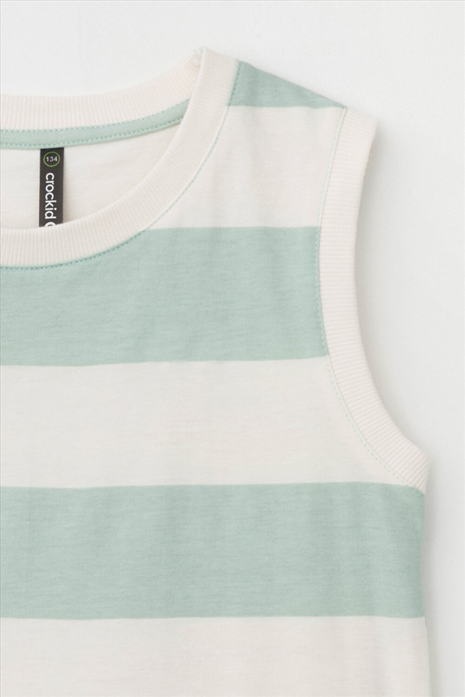 Производитель: CROCKID; Артикул поставщика: КР 302476; Ткань: Супрем; Состав: 100% хлопок; Сезон: Весна, Лето; Год: 2024; Страна: Россия; Российский размер: 134; Рост: 134; Обхват груди: 68 Летняя майка в полоску для мальчика из высококачественного трикотажного полотна. Оригинальная набивка выполнена из стойких текстильных красителей.