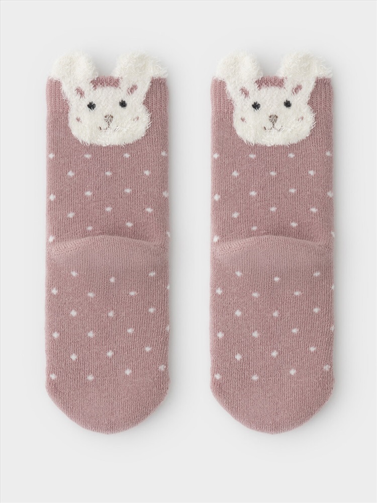 Носки махровые с формованной пяткой и эластичной резинкой по краю. Украшены рисунком и объёмными элементами. Изделие сохраняет форму и стойкий цвет после многочисленных стирок.