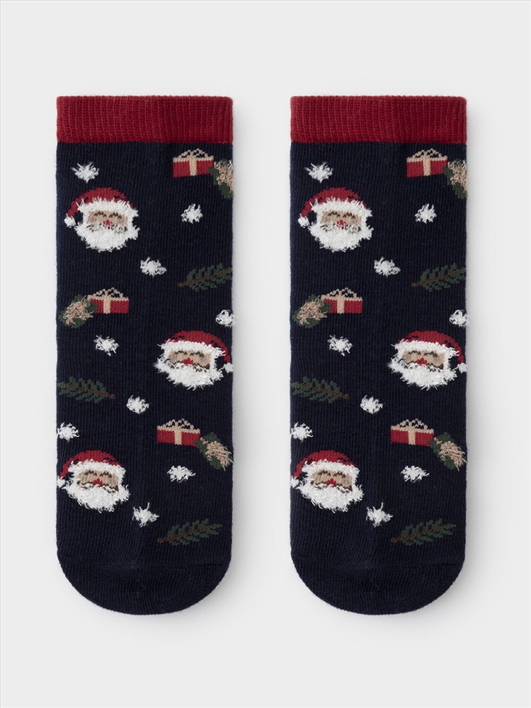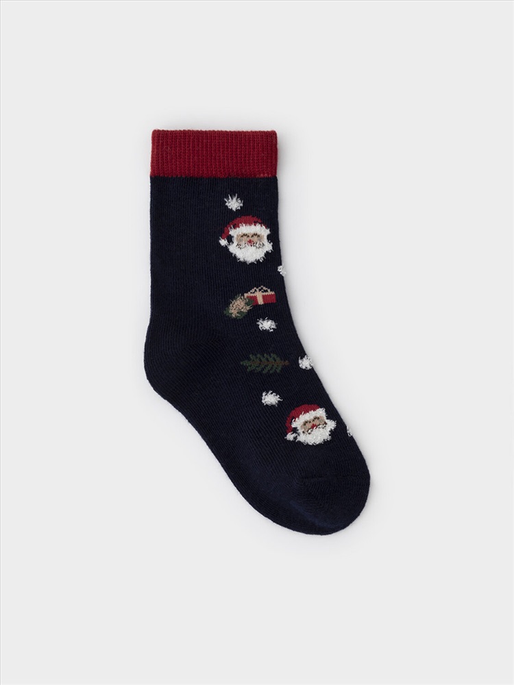 Носки длинные для мальчика с формованной пяткой и эластичной резинкой по краю. Украшены рисунком. Отлично подойдут для создания праздничных образов или как дополнение к подарку на Новый год и Рождество. Изделие сохраняет форму и стойкий цвет после многочисленных стирок.
