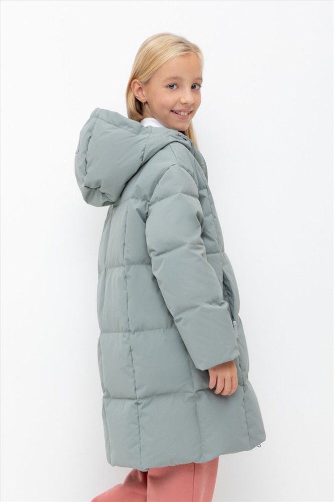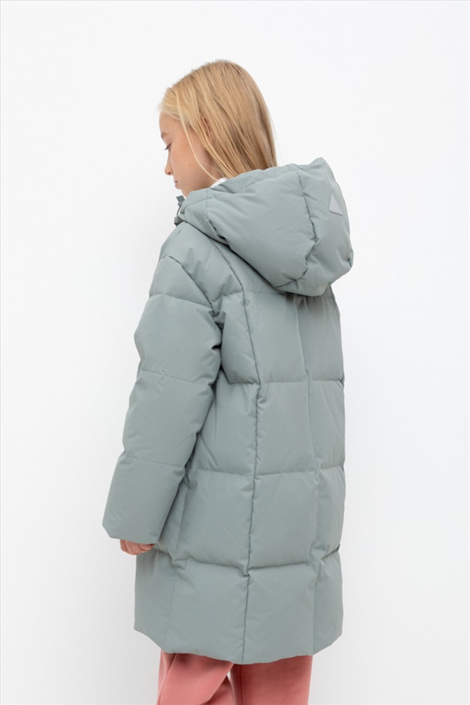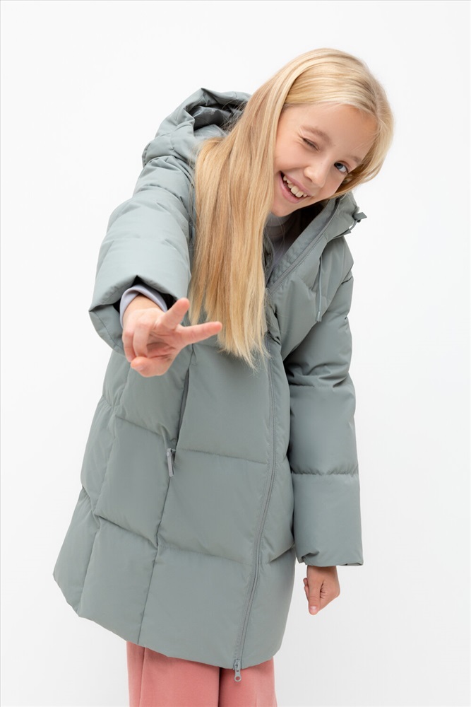 Пальто для девочки с натуральным утеплителем из гипоаллергенного гусиного пуха (70%) и пера (30%). Рекомендованный температурный режим - от -5° до -30°.