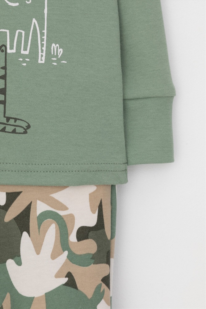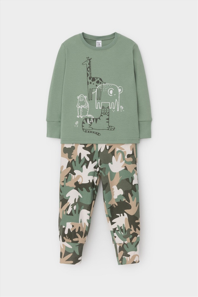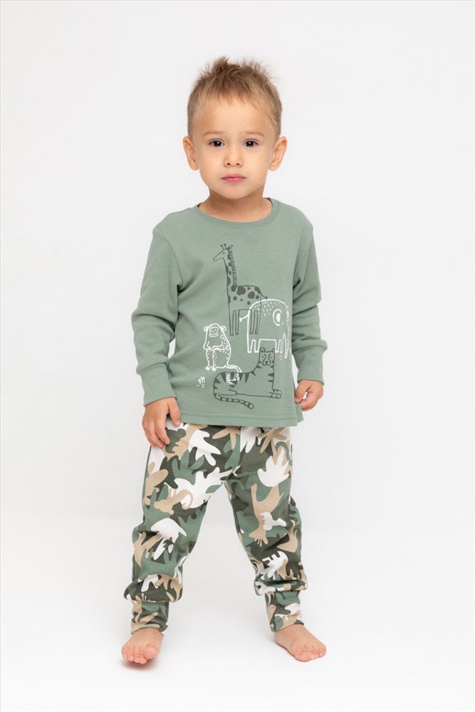 Трикотажная пижама из натурального хлопка. Джемпер с длинными рукавами с эластичными манжетами. У брюк эластичный пояс на резинке. Оригинальная набивка и принт выполнены из стойких, гипоаллергенных текстильных красителей. Пижама сохраняет цвет и форму после многократных стирок. Все трикотажные полотна производятся в соответствии с нормами Швейцарского сертификата ЭкоТекс.