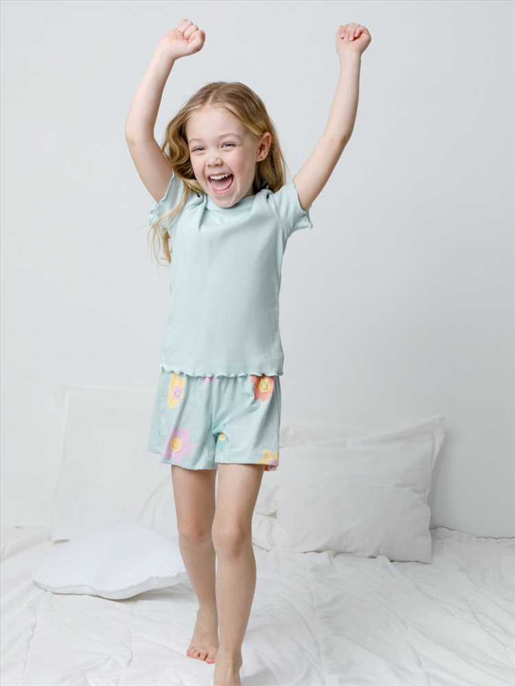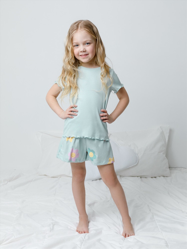 Трикотажная пижама из натурального хлопка. Футболка с короткими втачными рукавами изготовлена из эластичного трикотажа в рубчик. Шорты с эластичной резинкой в поясе выполнены из гладкого трикотажа супрем. Оригинальная набивка выполнена из стойких текстильных гипоаллергенных красителей. Изделие сохраняет цвет и форму после многократных стирок. Все трикотажные полотна производятся в соответсвии с нормами швейцарского сертификата ЭкоТекс.