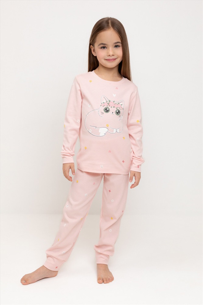 Трикотажная пижама из натурального хлопка. Джемпер с длинными втачными рукавами и брюки с эластичной резинкой в поясе. Мягкие манжеты на рукавах и по низу брюк. Оригинальная набивка и принт выполнены из стойких текстильных гипоаллергенных красителей. Изделие сохраняет цвет и форму после многократных стирок. Все трикотажные полотна производятся в соответсвии с нормами швейцарского сертификата ЭкоТекс.