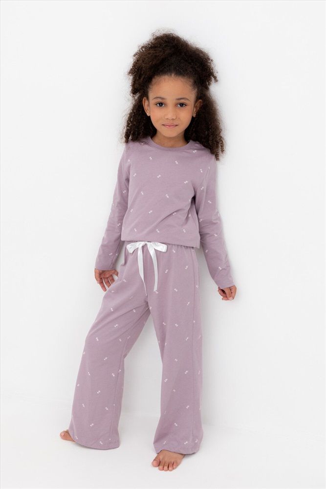 Трикотажная пижама из натурального хлопка. Джемпер с длинными втачными рукавами. У брюк в комплекте мягкий, эластичный пояс на резинке. Оригинальная набивка выполнена из стойких, гипоаллергенных текстильных красителей. Комплект сохраняет цвет и форму после многократных стирок. Все трикотажные полотна производятся в соответсвии с нормами Швейцарского сертификата ЭкоТекс.