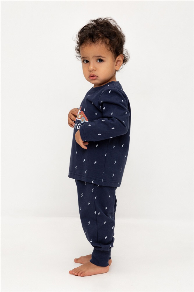 Трикотажная пижама из натурального хлопка. Джемпер с длинными рукавами с эластичными манжетами. У брюк эластичный пояс на резинке. Оригинальная набивка и принт выполнены из стойких, гипоаллергенных текстильных красителей. Пижама сохраняет цвет и форму после многократных стирок. Все трикотажные полотна производятся в соответствии с нормами Швейцарского сертификата ЭкоТекс.