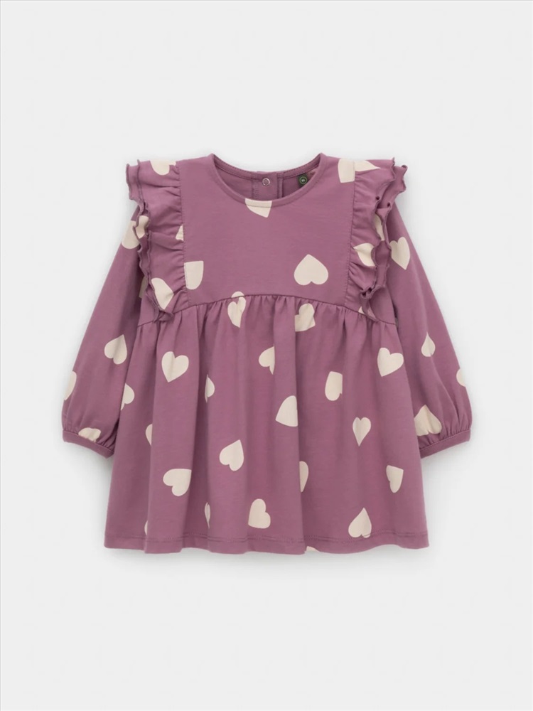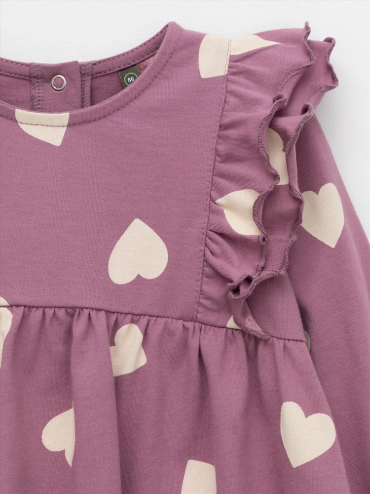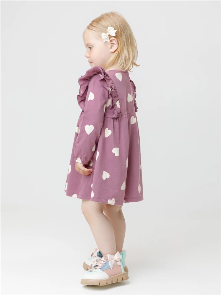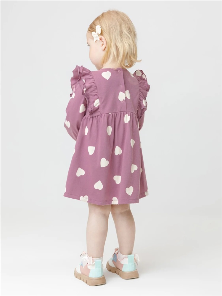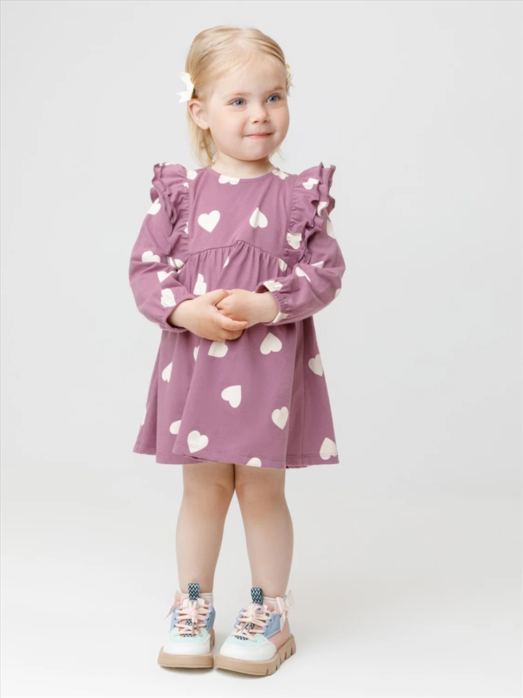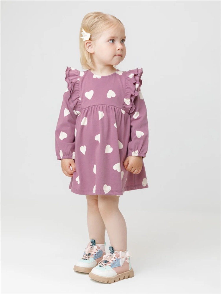 Платье с оборками для девочки. Изготовлено из высококачественного гладкого трикотажа, произведённого из натурального хлопка. Застёгивается на спинке на планку с кнопками. Оригинальный рисунок выполнен из стойких текстильных гипоаллергенных красителей. Изделие сохраняет цвет и форму после многократных стирок. Все трикотажные полотна производятся в соответствии с нормами швейцарского сертификата ЭкоТекс.