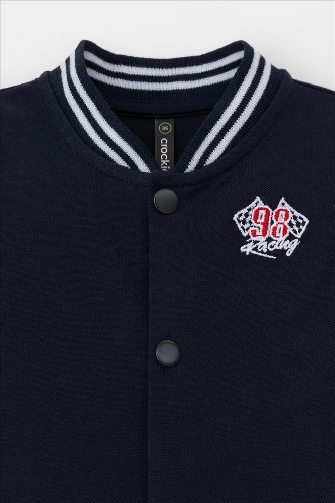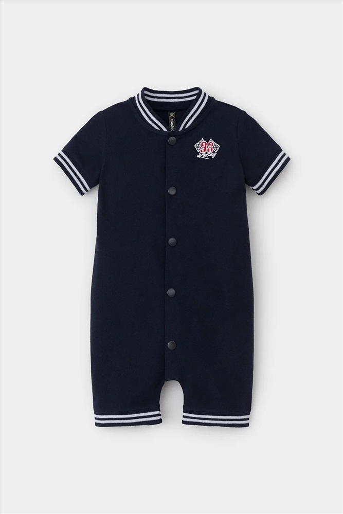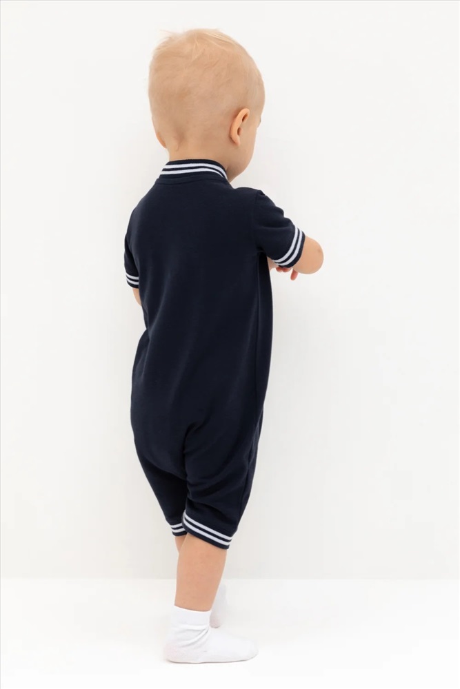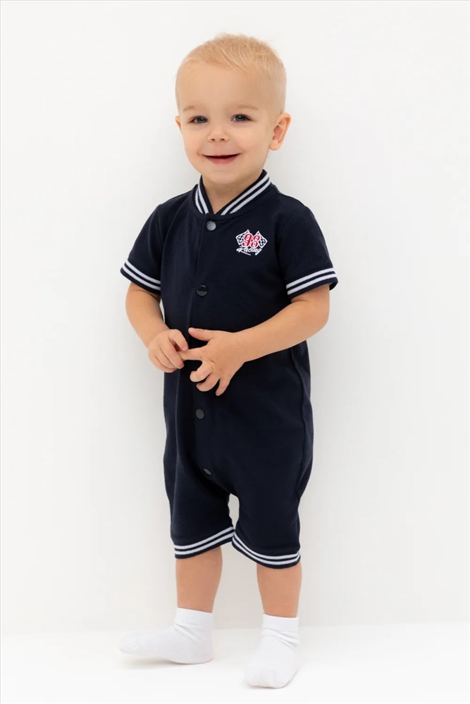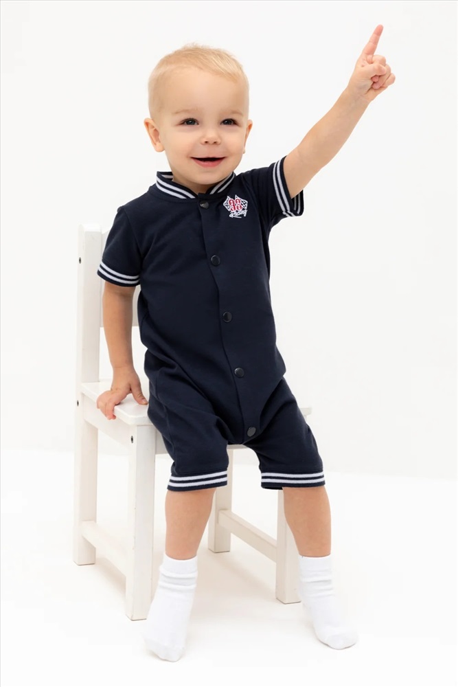 Легкий трикотажный песочник для мальчика из высококачественного хлопка. Застёгивается спереди на кнопки. Украшен вышивкой на груди. Изделие сохраняет цвет и форму после многократных стирок.