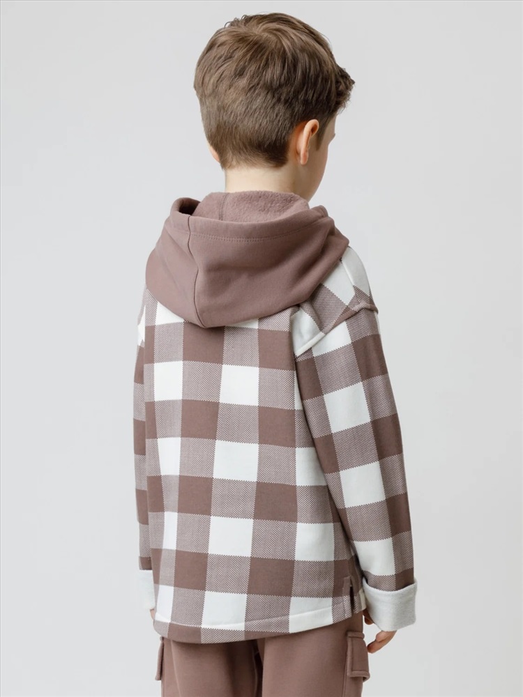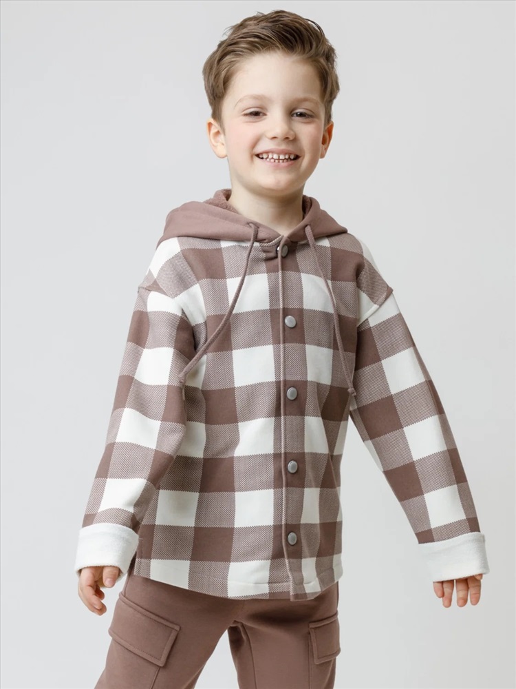 Производитель: CROCKID; Российский размер: 92; Рост: 92; Обхват груди: 52; Артикул поставщика: КР 302196; Ткань: Футер трехнитка петля; Состав: 80% хлопок, 20% полиэстер; Сезон: Осень, Зима; Год: 2025; Страна: Россия Свободная трикотажная рубашка для мальчика из мягкого петельчатого футера. В составе 80% натурального хлопка и 20% полиэстера, при этом полиэстер ввязан внутрь по особой технологии и не соприкасается с кожей. Застёгивается на кнопки. Модель с капюшоном и спущенным плечом. Рисунок в клетку выполнен из стойких текстильных гипоаллергенных красителей. Изделие сохраняет цвет и форму после многократных стирок. Все трикотажные полотна производятся в соответствии с нормами швейцарского сертификата ЭкоТекс.