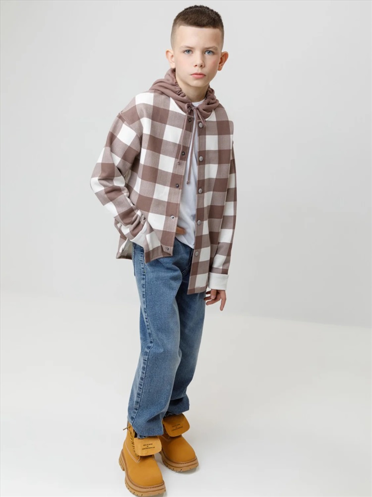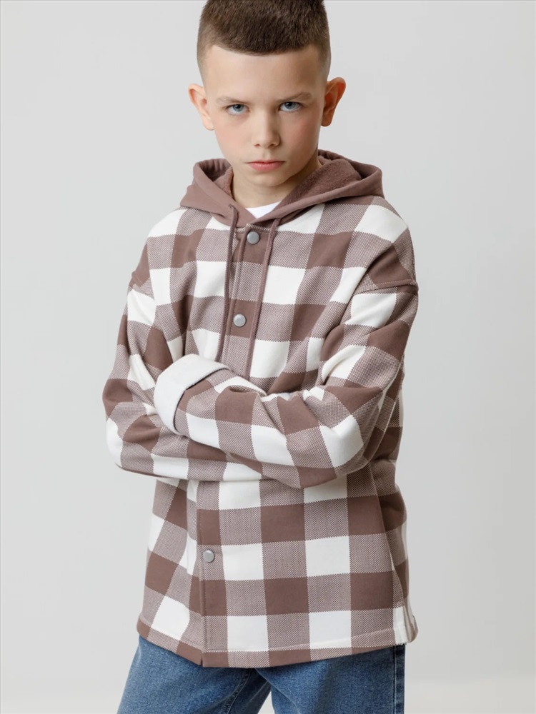 Производитель: CROCKID; Российский размер: 140; Рост: 140; Обхват груди: 72; Артикул поставщика: КР 302196; Ткань: Футер трехнитка петля; Состав: 80% хлопок, 20% полиэстер; Сезон: Осень, Зима; Год: 2025; Страна: Россия Свободная трикотажная рубашка для мальчика из мягкого петельчатого футера. В составе 80% натурального хлопка и 20% полиэстера, при этом полиэстер ввязан внутрь по особой технологии и не соприкасается с кожей. Застёгивается на кнопки. Модель с капюшоном и спущенным плечом. Рисунок в клетку выполнен из стойких текстильных гипоаллергенных красителей. Изделие сохраняет цвет и форму после многократных стирок. Все трикотажные полотна производятся в соответствии с нормами швейцарского сертификата ЭкоТекс.