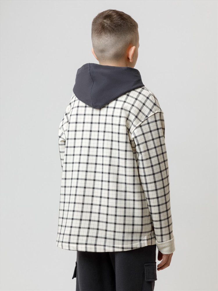 Производитель: CROCKID; Российский размер: 140; Рост: 140; Обхват груди: 72; Артикул поставщика: КР 302780; Ткань: Футер трехнитка петля; Состав: 80% хлопок, 20% полиэстер; Сезон: Осень, Зима; Год: 2025; Страна: Россия Свободная трикотажная рубашка для мальчика из мягкого петельчатого футера. В составе 80% натурального хлопка и 20% полиэстера, при этом полиэстер ввязан внутрь по особой технологии и не соприкасается с кожей. Застёгивается на кнопки. Модель с капюшоном и спущенным плечом. Рисунок в клетку выполнен из стойких текстильных гипоаллергенных красителей. Изделие сохраняет цвет и форму после многократных стирок. Все трикотажные полотна производятся в соответствии с нормами швейцарского сертификата ЭкоТекс.