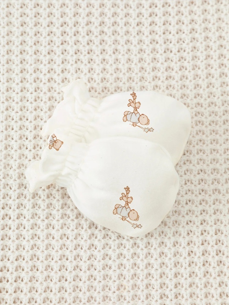 Варежки-антицарапки для новорождённых из мягкого эластичного трикотажа интерлок, произведённого из натурального хлопка. Изделие фиксируется на руке с помощью мягкой резинки. Все трикотажные полотна производятся в соответствии с нормами швейцарского сертификата ЭкоТекс.