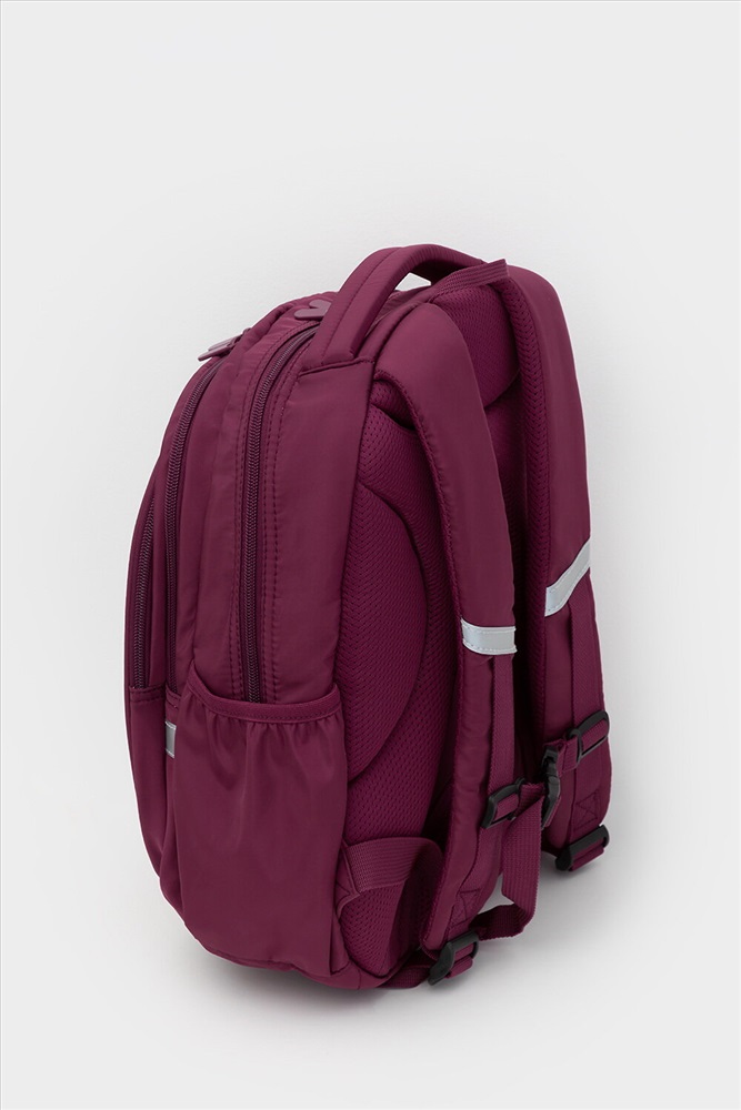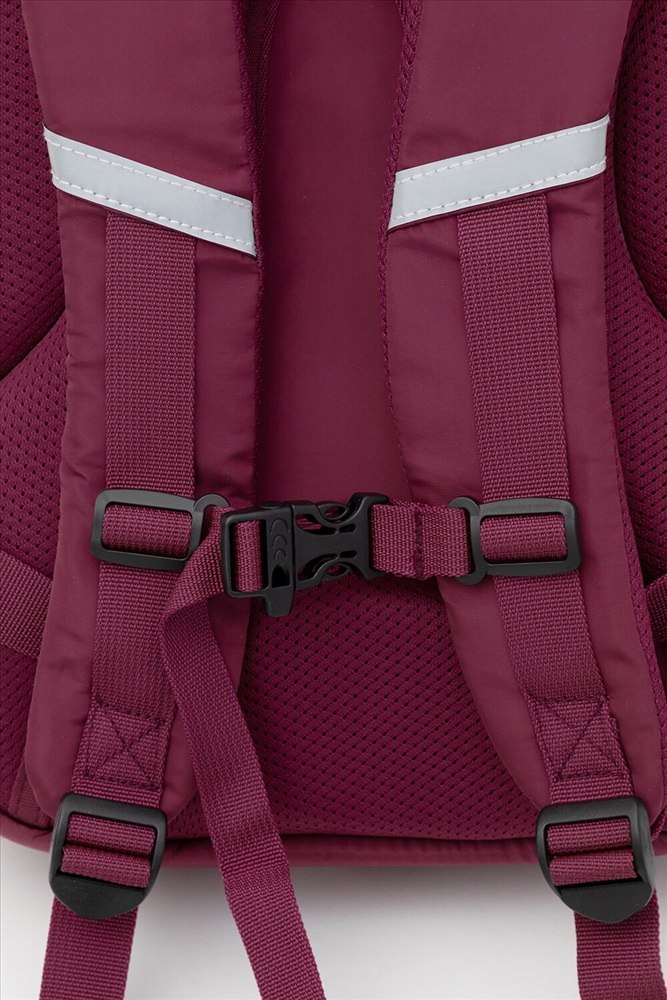 Детский рюкзак. Сделан из мембранной ткани, обладающей водоотталкивающими свойствами. Лямки регулируются по росту ребенка, дополнительно имеется застежка фастекс для фиксации лямок на груди. Предусмотрена дополнительная петля, чтобы носить рюкзак в руке или вешать его на крючок. Застегивается на молнию с двумя замками. По бокам два отделения для бутылок. Впереди два вместительных кармана на молнии. Светоотражающие элементы служат для дополнительной безопасности в темное время суток. Размер 40х33