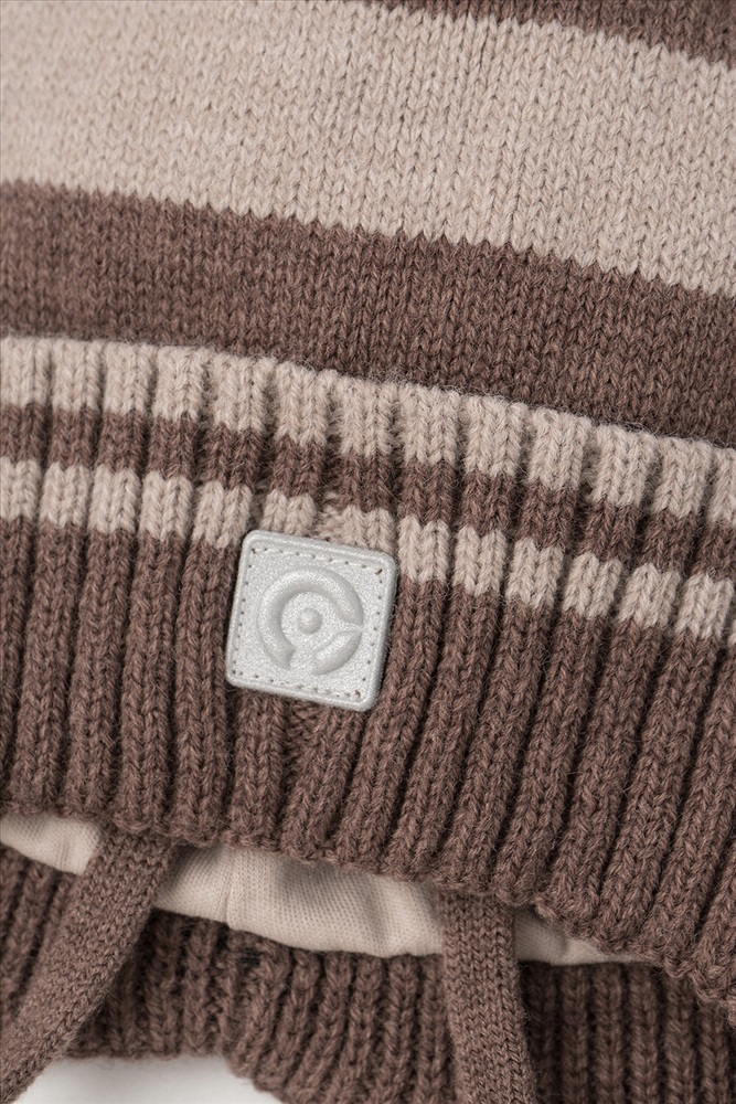 Полосатая зимняя шапка на завязках с подкладом из хлопкового трикотажа. Верх выполнен из полушерстяной пряжи в составе которой шерсть австралийского мериноса. Подойдёт для прохладного межсезонья и небольших морозов. Светоотражающая нашивка спереди обеспечивает безопасность в темное время суток.