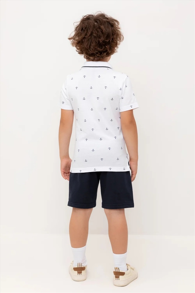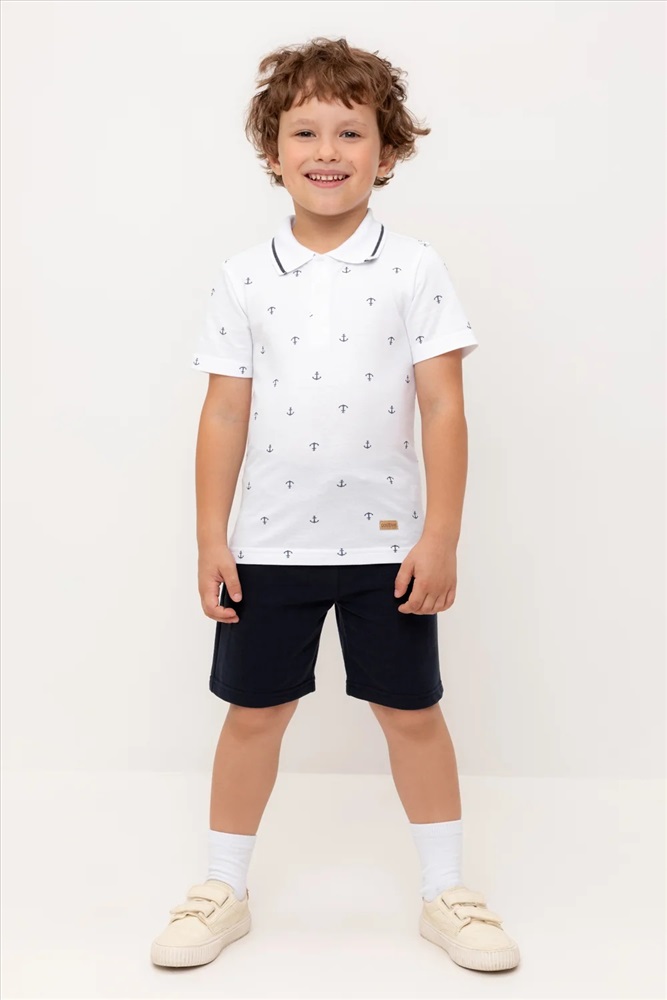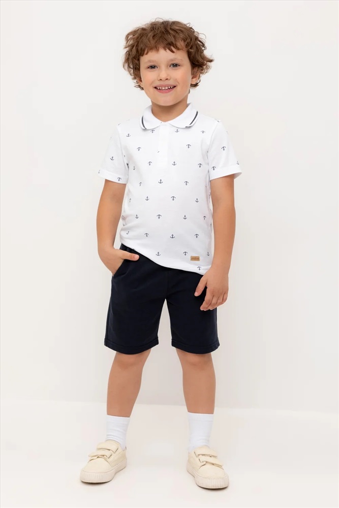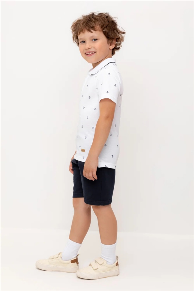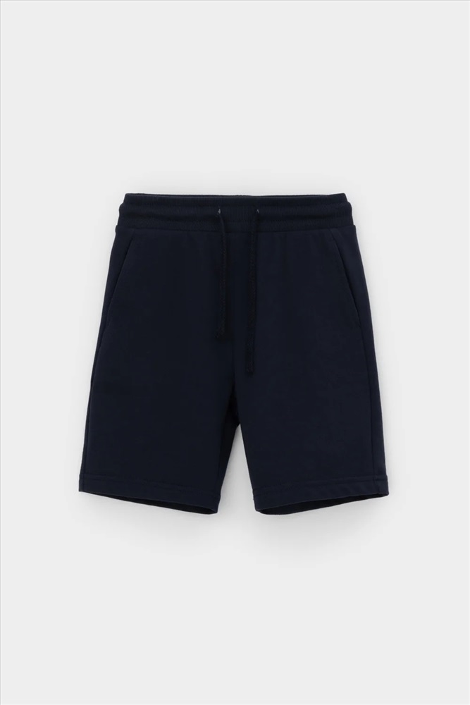 Трикотажные шорты для мальчика из петельчатого футера. Эластичный пояс на резинке регулируется по ширине с помощью шнурка, по бокам два удобных кармана.