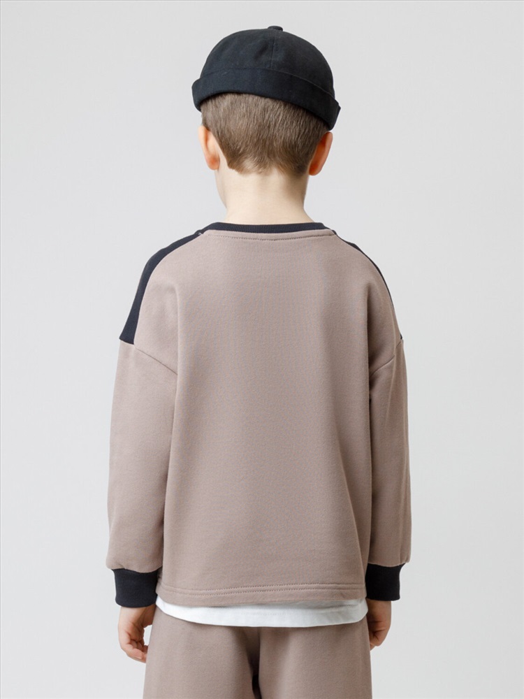 Свитшот для мальчика из высококачественного петельчатого футера. Обтачка горловины и манжеты выполнены из эластичного полотна. Для удобства одевания имеется застёжка на кнопки в размерах 92 и 98. Оригинальный принт нанесён с помощью стойких текстильных гипоаллергенных красителей.