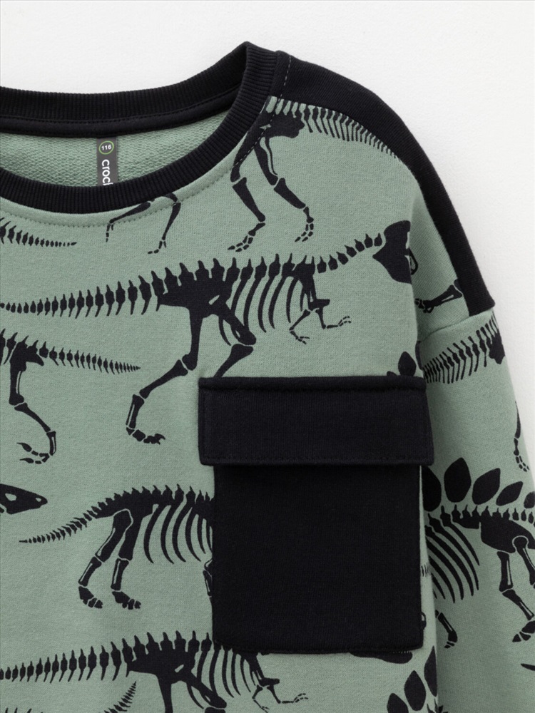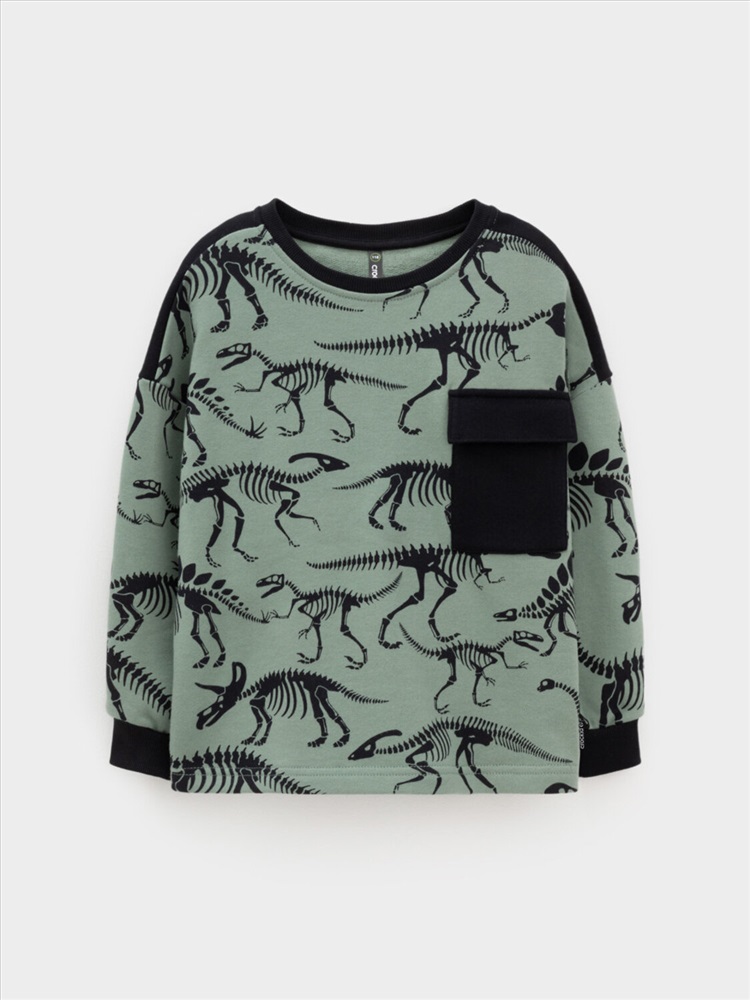 Свитшот для мальчика из высококачественного петельчатого футера. Обтачка горловины и манжеты выполнены из эластичного полотна. Для удобства одевания имеется застёжка на кнопки в размерах 92 и 98. Оригинальный рисунок нанесён с помощью стойких текстильных гипоаллергенных красителей.