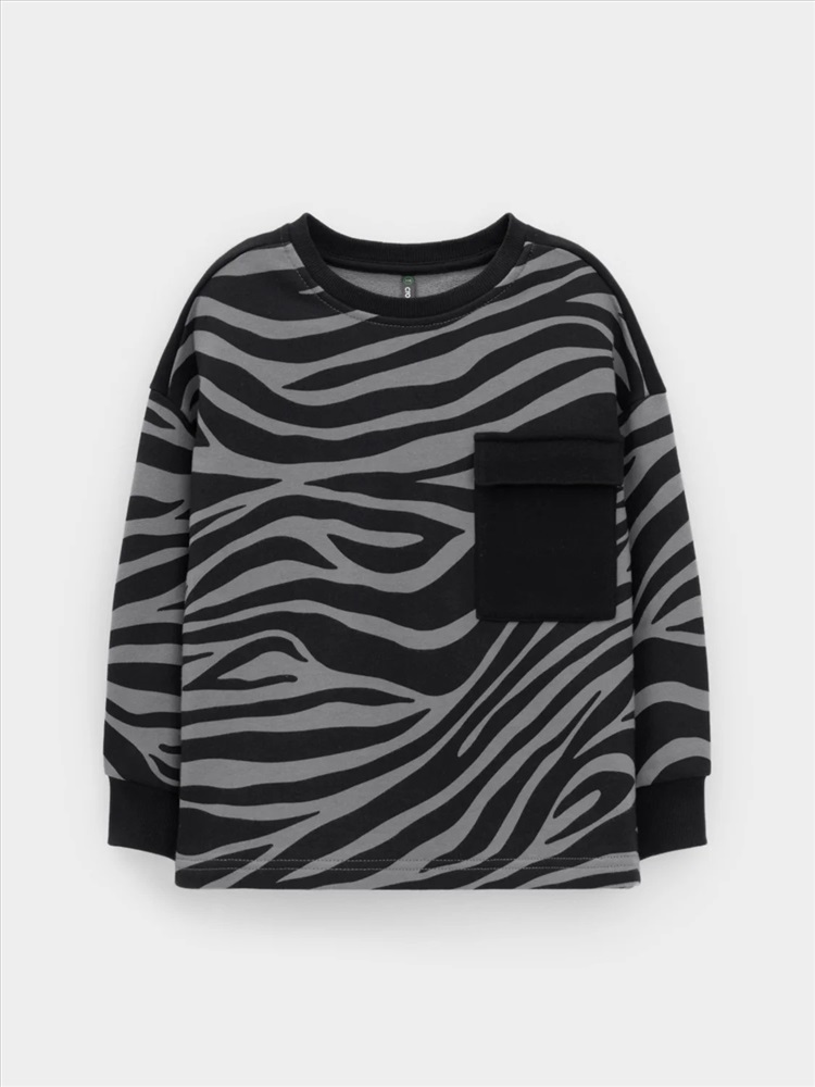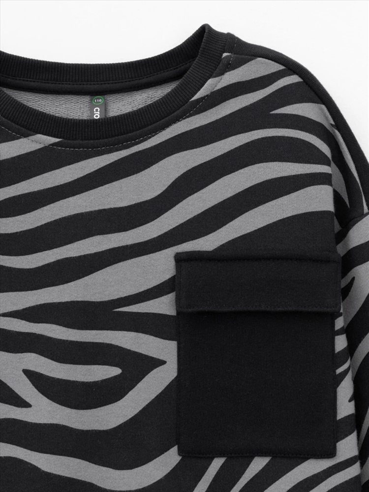 Свитшот для мальчика из высококачественного петельчатого футера. Обтачка горловины и манжеты выполнены из эластичного полотна. Для удобства одевания имеется застёжка на кнопки в размерах 92 и 98. Оригинальный рисунок нанесён с помощью стойких текстильных гипоаллергенных красителей.