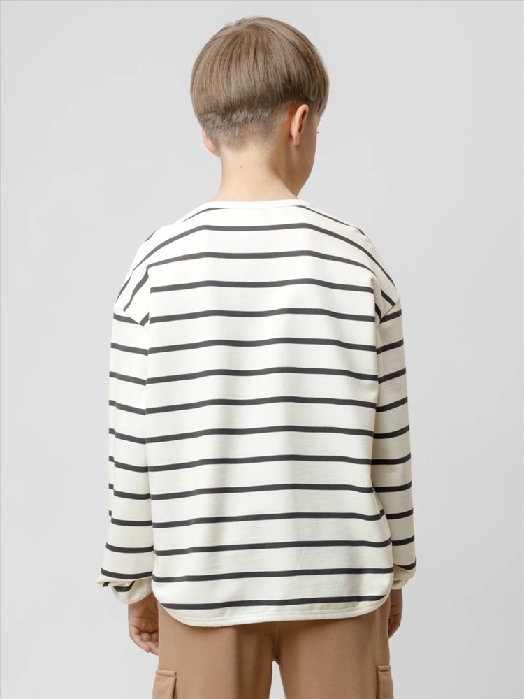 Свитшот для мальчика из мягкого петельчатого футера, произведённого из высококачественного натурального хлопка. Для удобства одевания имеется застёжка на кнопки. Изделие сохраняет цвет и форму после многократных стирок. Все трикотажные полотна производятся в соответствии с нормами швейцарского сертификата ЭкоТекс.