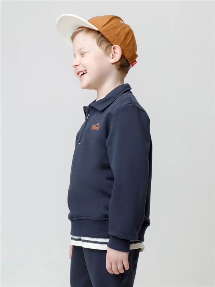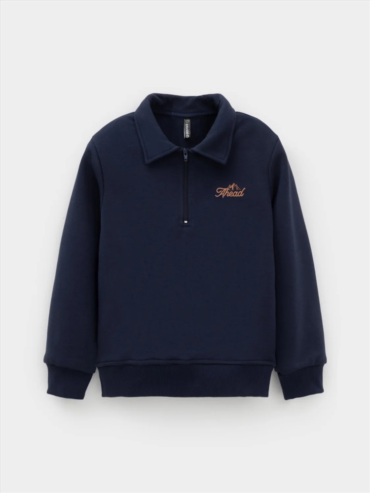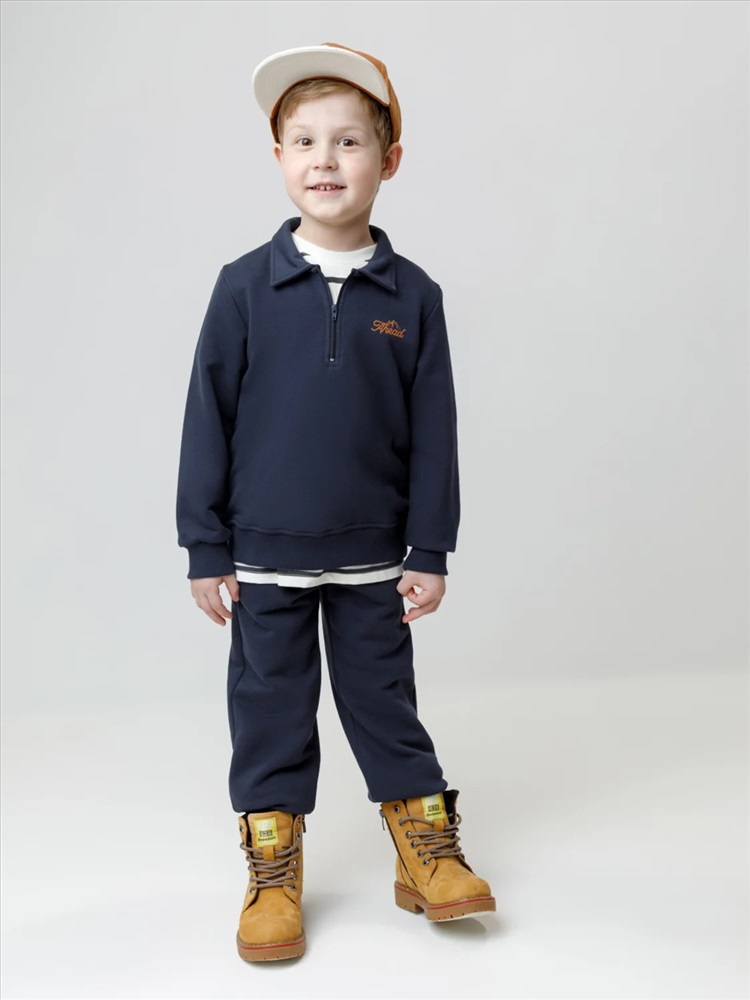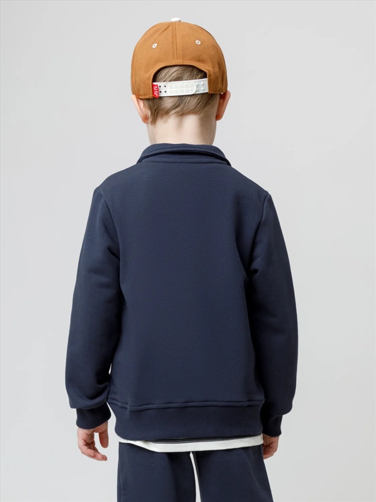 Свитшот с воротником для мальчика. Изготовлен из высококачественного петельчатого футера. В составе 80% натурального хлопка и 20% полиэстера, при этом полиэстер ввязан внутрь по особой технологии и не соприкасается с кожей. Манжеты и пояс выполнены из эластичного полотна. На груди короткая застёжка на молнию. Оригинальный принт выполнен из стойких текстильных гипоаллергенных красителей. Изделие сохраняет цвет и форму после многократных стирок.