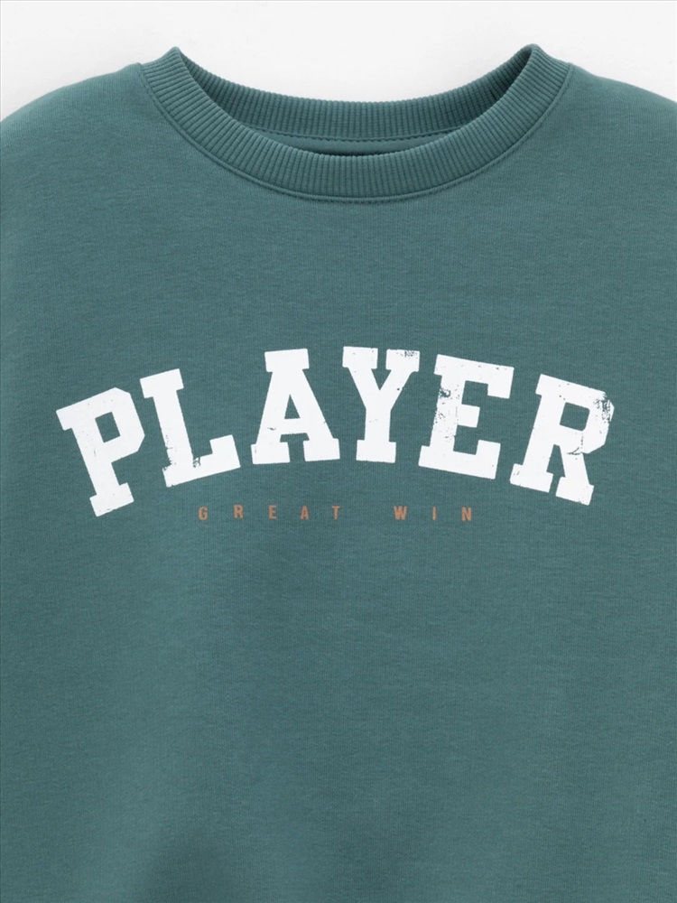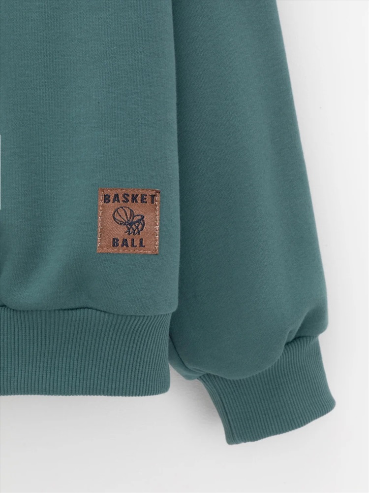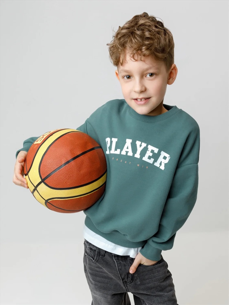 Тёплый свитшот для мальчика из мягкого футера с начёсом. Обтачка горловины, манжеты и пояс выполнены из эластичного полотна. В размерах 92 и 98 на спинке имеется застёжка на кнопки. Оригинальный принт нанесён с помощью стойких текстильных гипоаллергенных красителей.