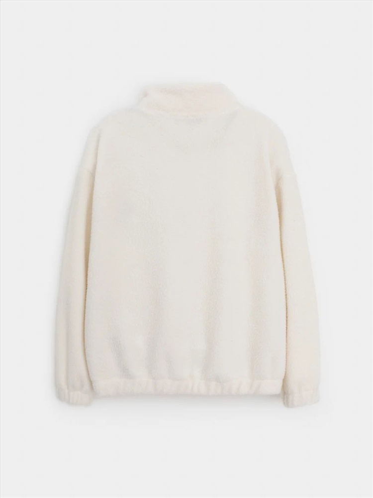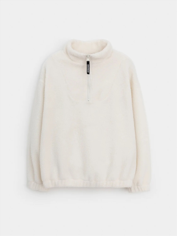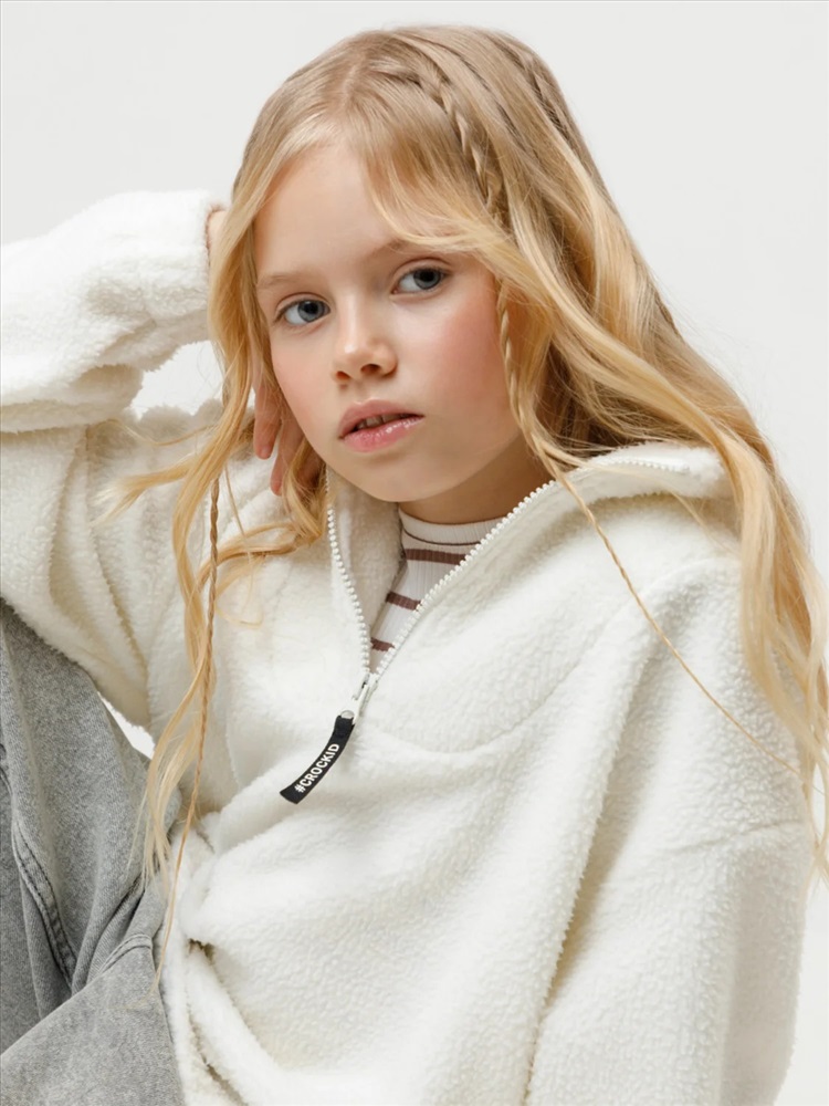 Детская толстовка из флиса. У изделия высокий воротник и застёжка спереди на короткую молнию. Рукава и низ изделия собраны на резинку. Толстовка сохраняет цвет и форму после многократных стирок.