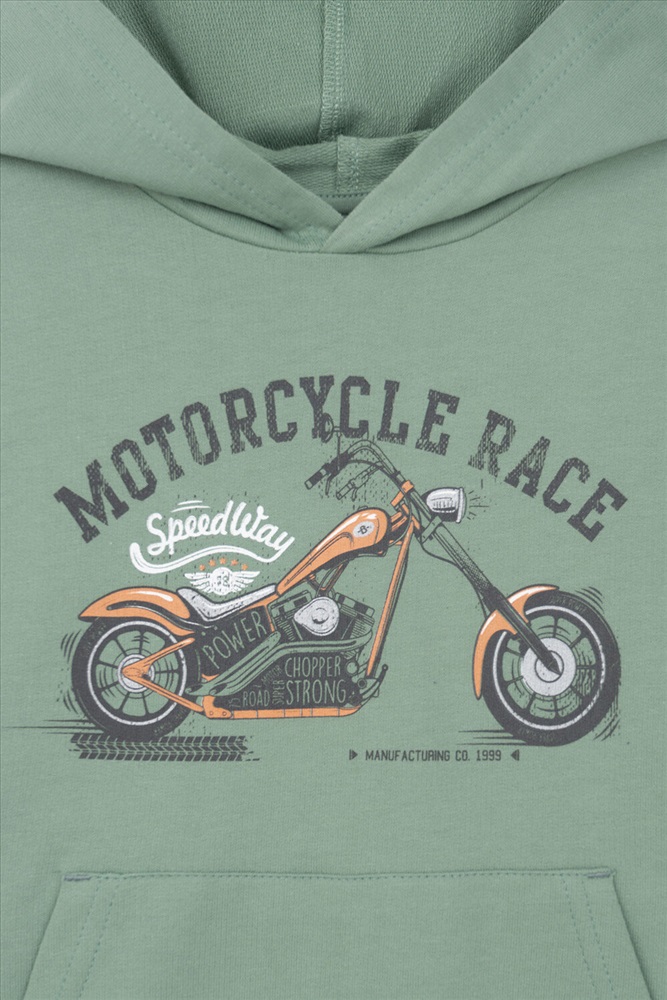Толстовка с капюшоном для мальчика из петельчатого футера . Манжеты и пояс из эластичного трикотажа в рубчик. Спереди удобный карман-кенгуру.