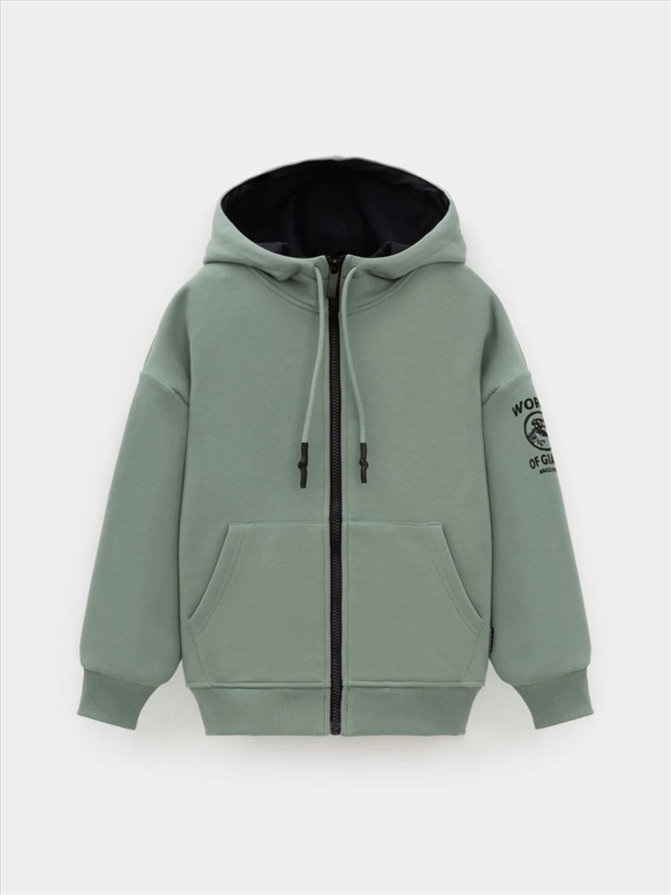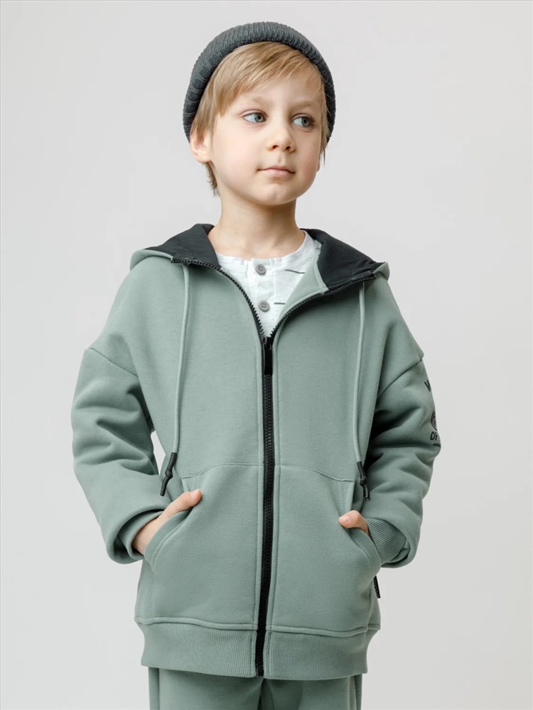 Толстовка с капюшоном для мальчика из тёплого футера с начёсом. Пояс и манжеты выполнены из мягкого эластичного трикотажа. Застёгивается на молнию. Спереди удобный и вместительный карман-кенгуру. Худи сохраняет форму и стойкий цвет после многочисленных стирок и идеально подходит на каждый день. Оригинальный принт выполнен из стойких текстильных гипоаллергенных красителей. Все трикотажные полотна производятся в соответствии с нормами швейцарского сертификата ЭкоТекс.