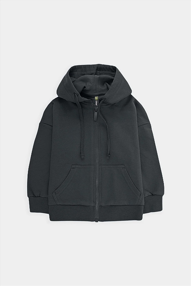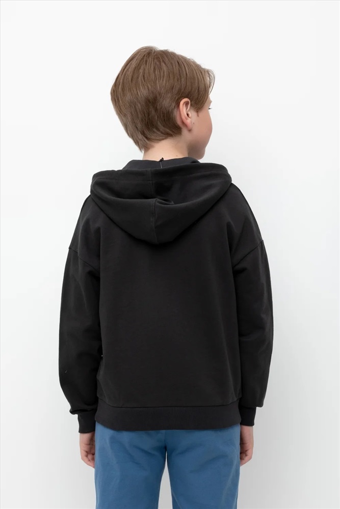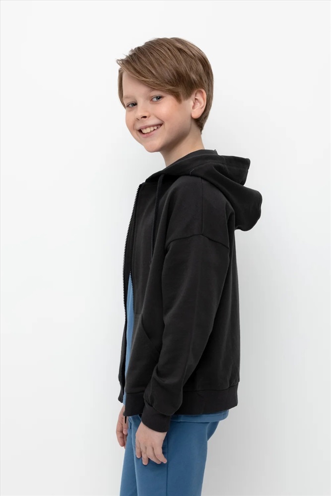Трикотажная куртка для мальчика из петельчатого футера. Спереди удобные накладные карманы. Манжеты и пояс из эластичного трикотажа в рубчик.