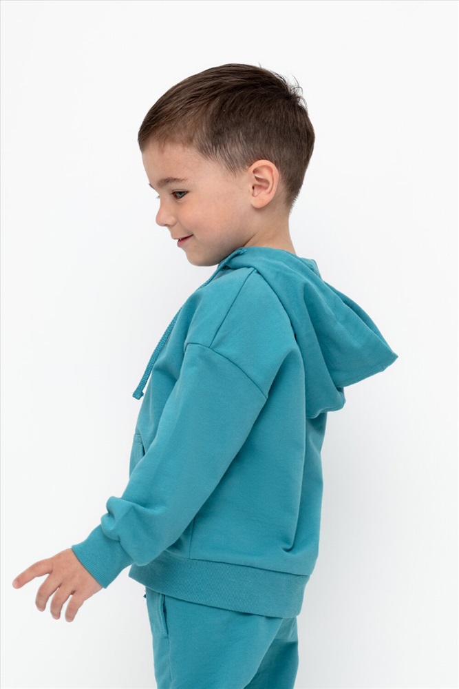 Трикотажная куртка для мальчика из петельчатого футера. Спереди удобные накладные карманы. Манжеты и пояс из эластичного трикотажа в рубчик.