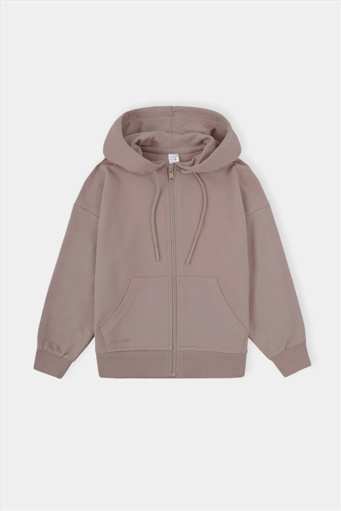 Трикотажная куртка на молнии из петельчатого футера. Спереди удобные накладные карманы. Манжеты и пояс из эластичного трикотажа в рубчик.
