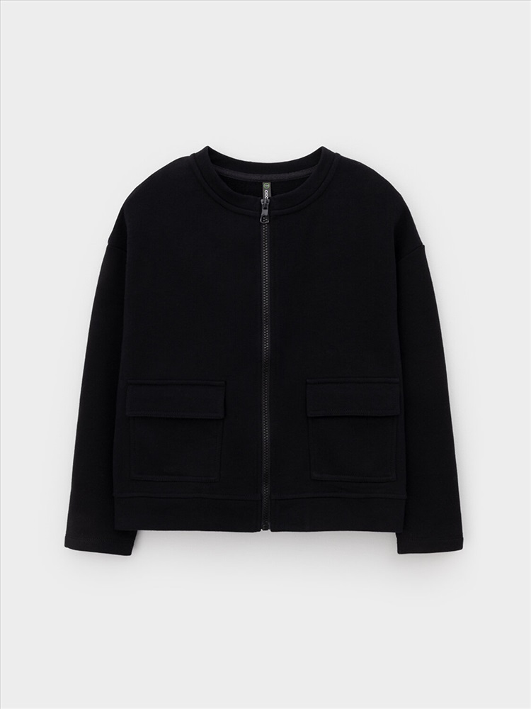 Бомбер школьный для девочки со спущенными плечами из высококачественного петельчатого футера. Застёгивается на молнию. По бокам два накладных кармана.
