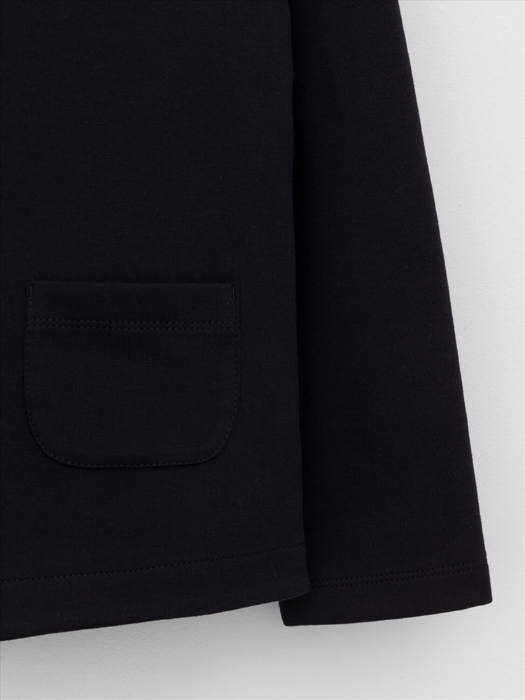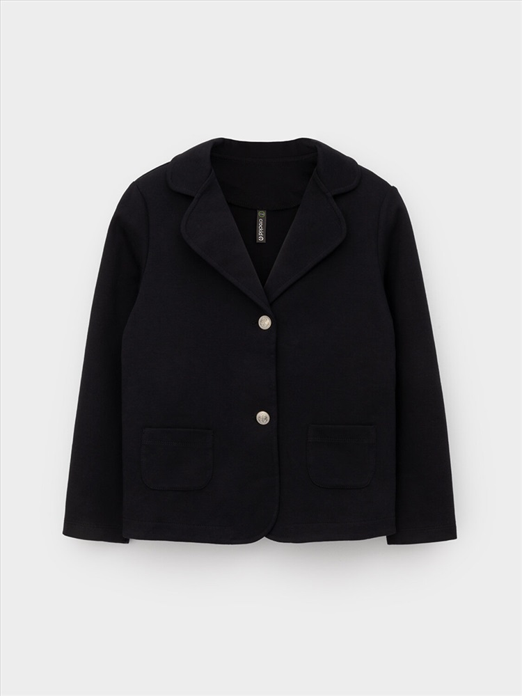 Пиджак школьный для девочки с воротником из высококачественного трикотажа интерлок DOUBLE FACE. Застёгивается на пуговицы. По бокам два накладных кармана.