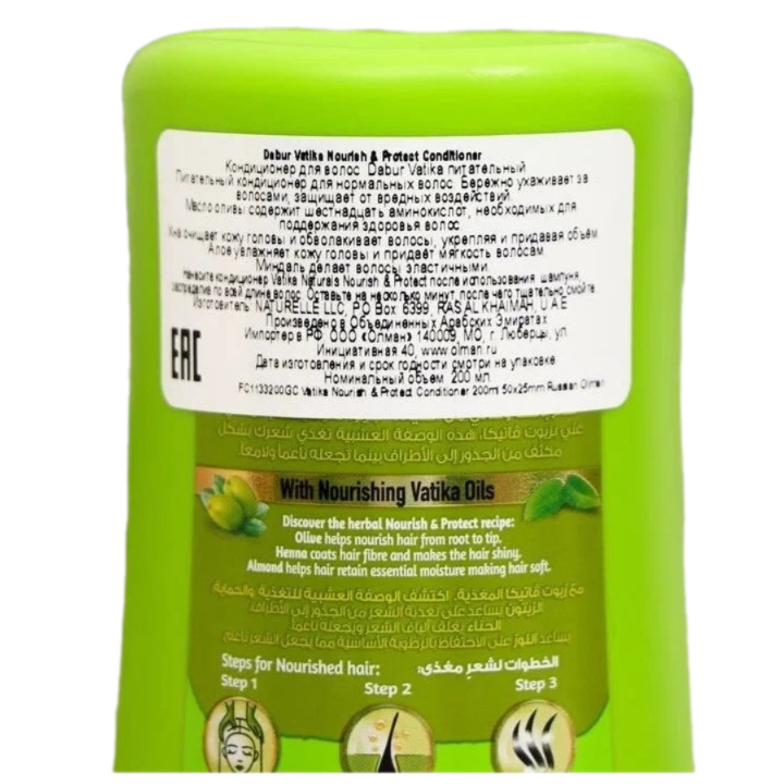Brand: Dabur Вес/Объем/ колч: 210 Мл/уп/г: мл Продается как: шт. Кондиционер для волос Dabur Vatika Nourish & Protect подходит для волос, которые нуждаются в увлажнении и питании. Формула кондиционера идеально подобрана для ухода за нормальными волосами, восстанавливает и поддерживает здоровую структуру волос. Комментарии к товару