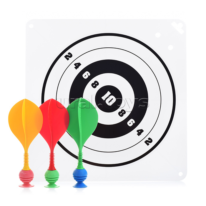Код: 337543 Страна производитель: Россия Размеры упаковки: 50 x 40 x 5 см Количество в коробке: 4 • В наборе: - мишень (40х40 см.), - 3 дротика на присосках (17 см.) • Материал: пластик, резина. • Соответствует требованиям безопасности и стандартам качества продукции. • Для детей старше 3-х лет. Комментарии к товару