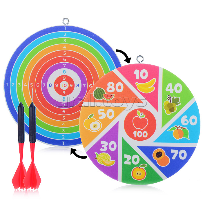 Код: 372154 Штрихкод: 4600031115542 Страна производитель: Россия Размеры упаковки: 21 x 23 x 2 см Количество в коробке: 30 Дартс – популярная игра для активного отдыха! В набор Дартс MEGA TOYS входит мишень из прочного и упругого материала с двусторонней печатью и 2мя дротиками. Мишень сделана с удобной и надежной металлической петелькой для крепления. Дартс способствует развитию меткости, моторики и концентрации! Дартс MEGA TOYS представлен в трех размерах (170 мм, 220 мм, 320 мм) что представляет собой 3 уровня сложности и будет интересен даже самым опытным игрокам в популярную игру! Преимущества MEGA TOYS: - плотная износостойкая пена - 7 видов двухсторонней мишени дартса - 14 вариантов дизайна - удобные дротики с острой иглой - металлическая петелька для крепления Комментарии к товару