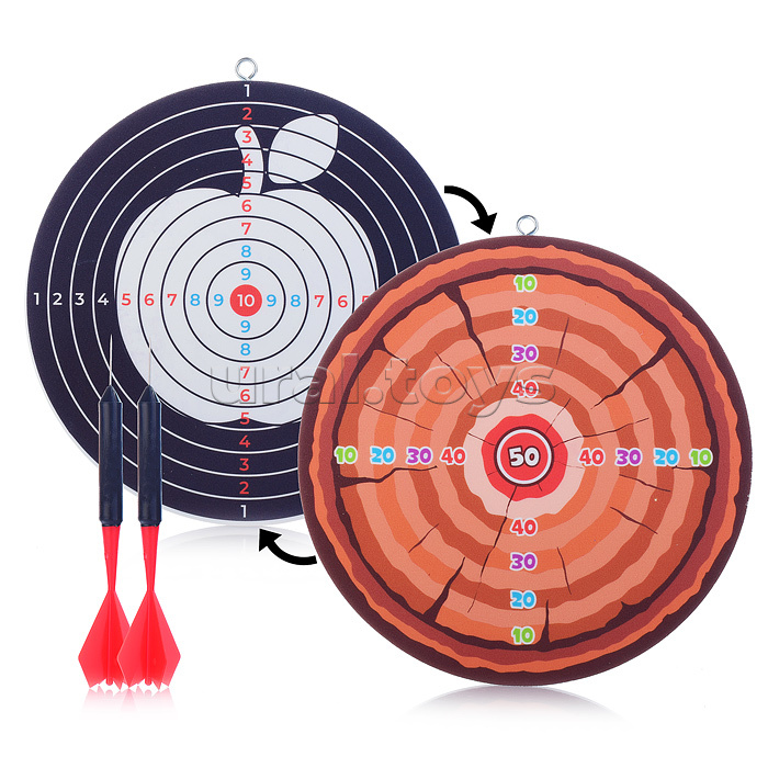 Преимущества MEGA TOYS: - плотная износостойкая пена - 7 видов двухсторонней мишени дартса - 14 вариантов дизайна - удобные дротики с острой иглой - металлическая петелька для крепления