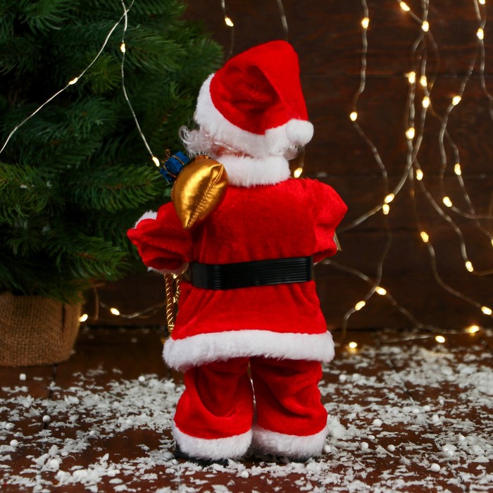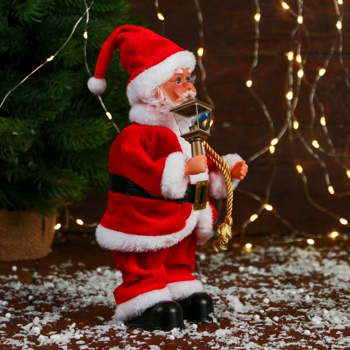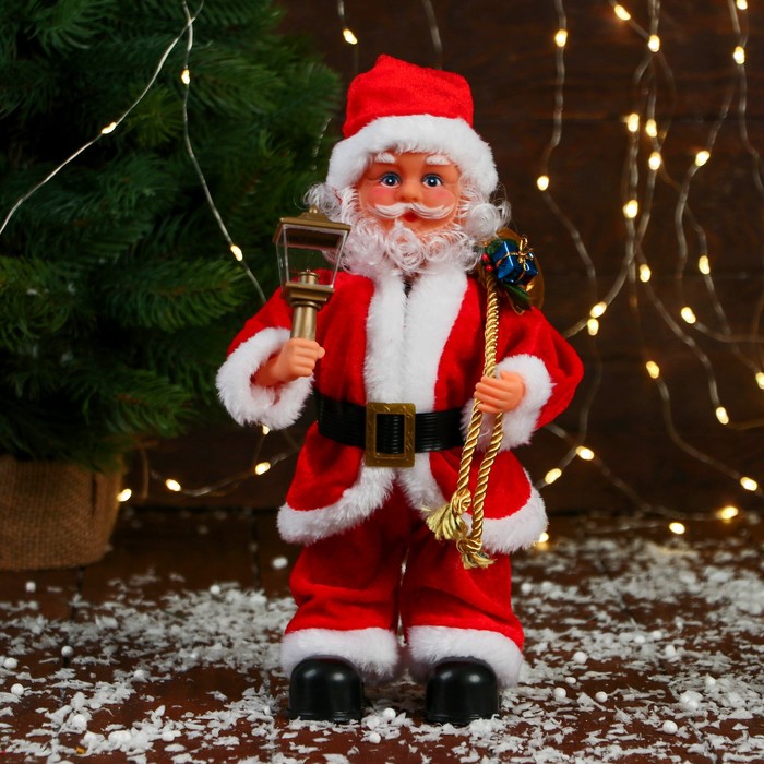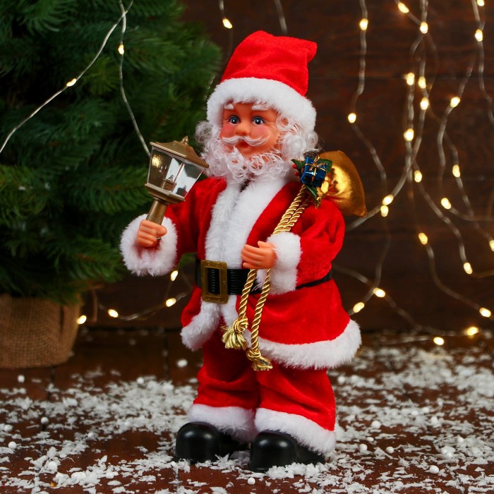 Фигурка Деда Мороза высотой 27 см с подсветкой и подвижными элементами станет выразительным украшением новогоднего интерьера. В традиционном образе с меховой шубой и фонариком, она привносит атмосферу зимнего праздника и уютного волшебства.