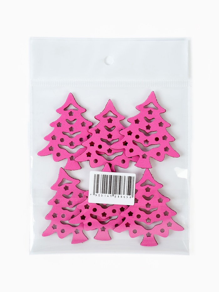 Габариты: 14 x 10 x 0,5 Страна: Россия В боксе: 200 набор Состав: ПВХ Материалы: ПВХ Фасовка: по 1 набор Индивидуальная упаковка: Пакет Сертификат: Не подлежит сертификации Набор: Да Цвет: Красный Символ года: Нет Тематика праздника: Новый год Материал: Фоамиран Новый год — самый волшебный праздник в году, и в этот день всё должно быть таким же сказочным и чудесным, особенно декор. В наборе 6 ёлочек размером 5 х 4,5 см. Как прикрепить декор