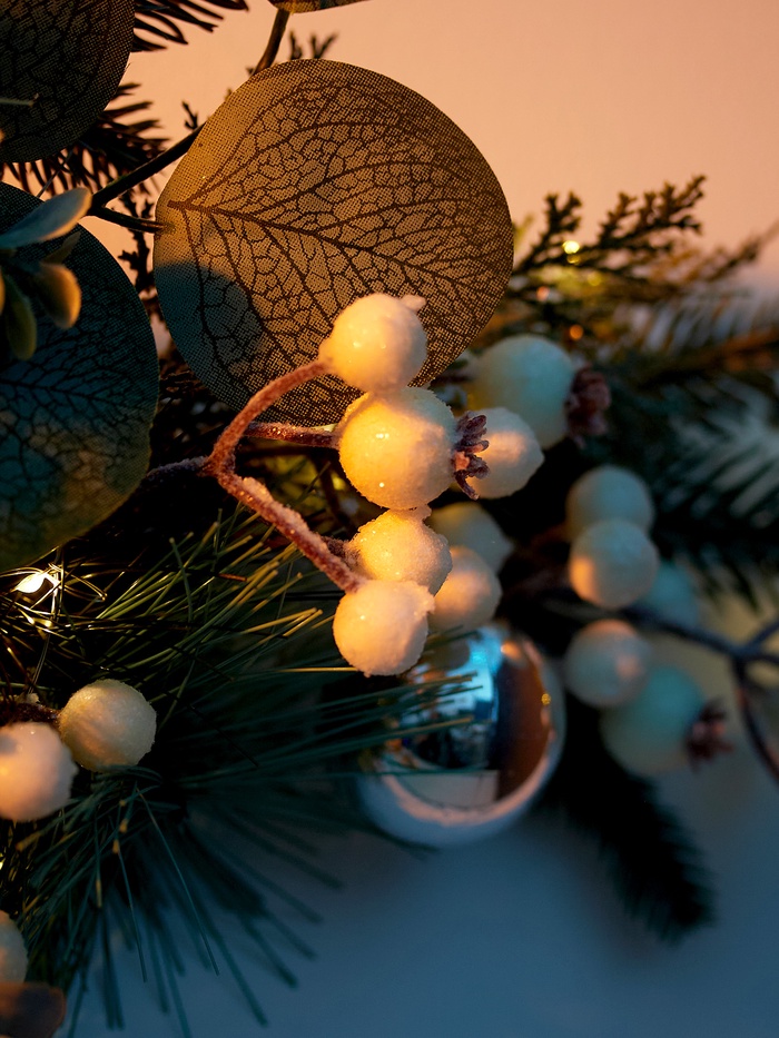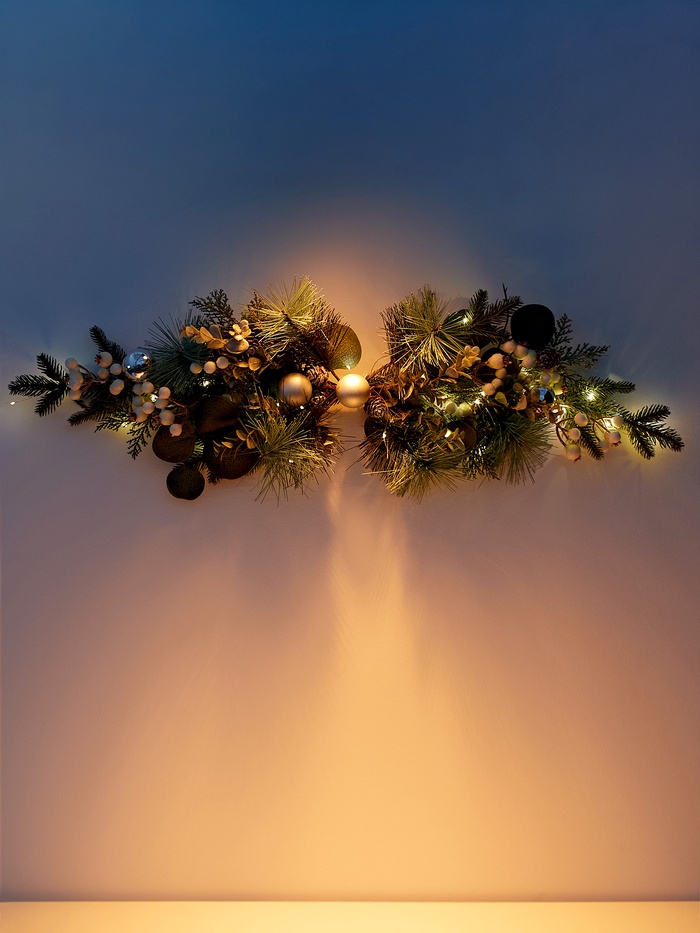 Габариты: 75 x 23 x 7 Страна: Китай В боксе: 18 шт В наборе: 1 шт Состав: Дерево, металл, от батареек (входят в комплект), пластик Материалы: дерево, металл, от батареек (входят в комплект), пластик Фасовка: по 1 шт Индивидуальная упаковка: Пакет Габариты товара: 72 см × 20 см × 6 см Сертификат: Не подлежит сертификации Цвет свечения: Тёплый белый Режим работы: Постоянное свечение Гарантийный срок, мес.: 6 Количество светодиодов: 18 Тематика праздника: Новый год Вид установки: Универсальный, Настенный (навесной), Надверный Материал: Пластик, Дерево Музыка: Нет Тип питания: От батареек Эффект снежного вихря: Нет Настенный декор объединяет в себе природную эстетику и современное световое оформление. Его размеры 72×20 см делают изделие заметным и эффектным украшением любого помещения, придавая интерьеру праздничное настроение и уют. Тёплое белое свечение 18 светодиодов создаёт мягкий и равномерный свет, который подчёркивает детали композиции и наполняет пространство комфортом. Изготовленный из дерева и пластика, декор отличается прочностью и лёгкостью, что облегчает его монтаж на стену, дверь или в универсальном варианте. Питание от двух батареек CR2032 обеспечивает автономность и свободу размещения без необходимости подключения к электросети. Постоянный режим свечения гарантирует стабильный и приятный свет без мерцания.