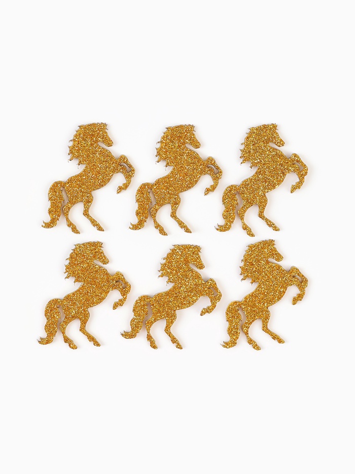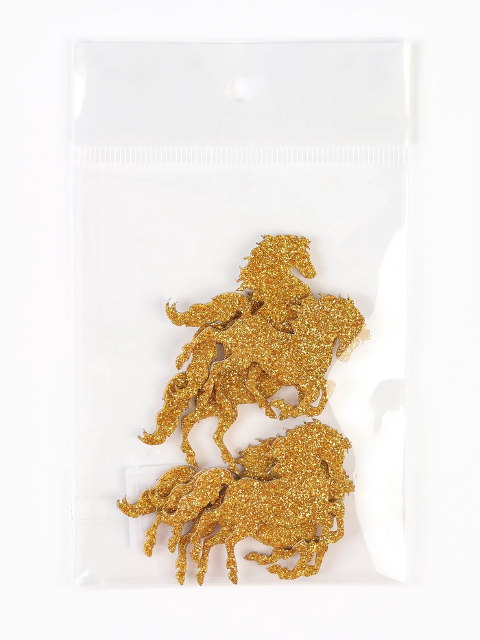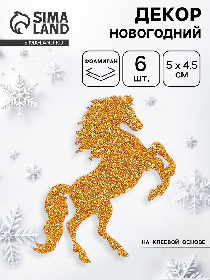Габариты: 13 x 8 x 0,3 Страна: Россия В боксе: 500 набор В наборе: 6 набор Состав: См. на упаковке Материалы: см. на упаковке Фасовка: по 1 набор Индивидуальная упаковка: Пакет (БОПП, полиэтилен, ПВХ, дой-пак) Сертификат: Не подлежит сертификации Набор: Да Цвет: Золотистый Символ года: Символ года 2026 (Лошадь) Тематика праздника: Новый год Материал: Фоамиран Новый год — самый волшебный праздник в году, и в этот день всё должно быть таким же сказочным и чудесным, особенно декор. В наборе 6 фигурок размером 5 х 4,5 см на клеевой основе. Применение