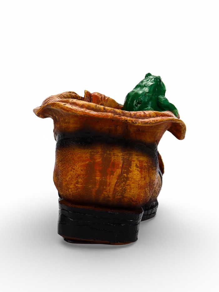 Производитель: Хорошие сувениры Габариты: 24 x 14 x 15 Доставка: Платная Страна: Россия В боксе: 1 шт Состав: Полистоун Материалы: полистоун Фасовка: по 1 шт Индивидуальная упаковка: Без упаковки Сертификат: Не подлежит сертификации Цвет: Коричневый Высота, см: 15 Вид установки: Настольное, Напольное Материал: Полистоун Можно оставлять зимой на улице: Да Особенности: Фигурное Тип полива: Без системы полива