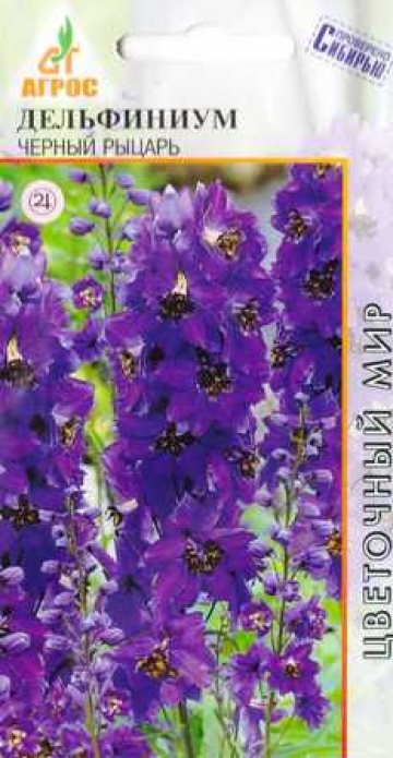 Многолетнее растение высотой 180 см. Цветки полумахровые, 5-6 см в диаметре, синие с черным центром. Соцветия плотные, конусовидные, 60-70 см длиной. Дельфиниумы светолюбивы, хотя могу выносить большую тень. Почва подходит суглинистая, богатая органикой,умеренно влажная. На зиму растения слегка укрывают листьями. Весной при отрастании побегов подкармливают азотными или органическими удобрениями. До цветения каждые 10-14 дней подкармливают комплексными удобрениями. Отцветшие побеги удаляют, что способствует повторному цветению. Семена на рассаду высевают в марте-апреле или в открытый грунт с мая по июль. Всходы появляются через 20-25 дней, при оптимальной температуре 10