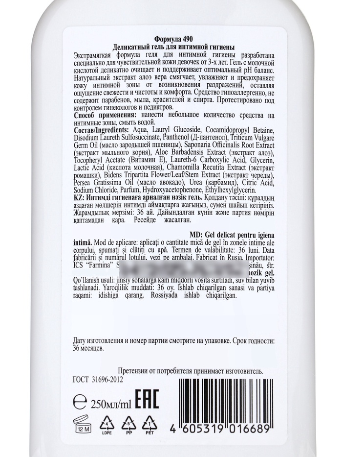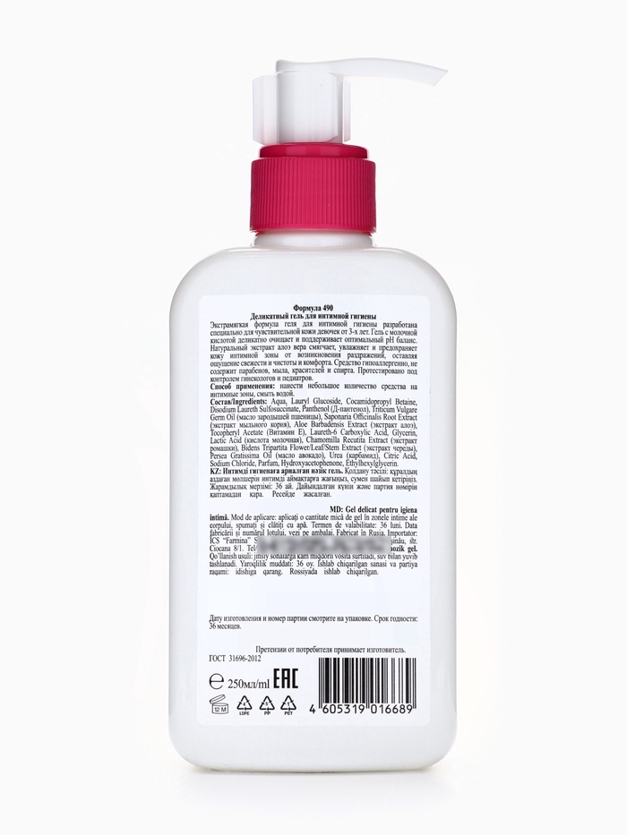 Габариты: 7 x 3,5 x 17,5 Страна: Россия В боксе: 12 шт Состав: См. на упаковке Материалы: см. на упаковке Фасовка: по 1 шт Индивидуальная упаковка: Без упаковки Сертификат: ЕАС Объём, мл: 250 Темпер. ограничение НЕ НИЖЕ ℃: 0 Описание: деликатный гель для интимной гигиены разработан специально для ухода за чувствительной кожей. Молочная кислота в составе средства поддерживает оптимальный pH баланс. Способствует бережному очищению, устраняет ощущение сухости и дискомфорта. Подходит для ежедневного применения. Объем: 250 мл. Деликатный гель для интимной гигиены поможет сохранить приятное чувство чистоты и свежести в течение всего дня. Способ применения: нанести не большое количество средства на интимные зоны, смыть водой. Состав: aqua, Sodium Laureth Sulfate, Cocamidopropy! Betaine, Glycerin, Sodium Chloride, Prunus Amygdalus ‘Dulcis Oil (Macno MuHganbHOe), Panthenol (J-nasirexon), Lactic Acid (Kucnora monouHaa), Rosa Alba Flower Extract (Skctpakt possi), Chamomilla Recutita Extract (Qxctpaxt Pomaiku arreyHoii), Citric Acid (Kucnota mmMonHas), Cocamide DEA, PEG-75 Lanolin, Parfum, DMDM Hydantoin, CI 45100, CI 14720. Комментарии к товару