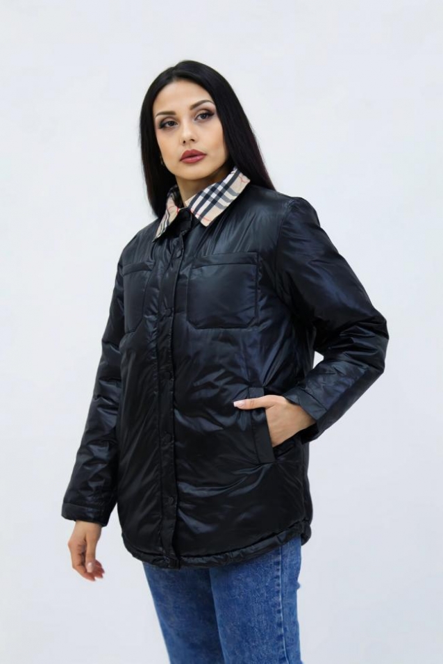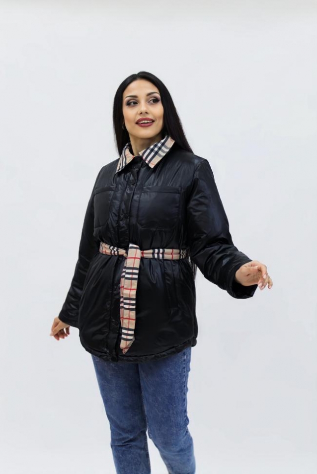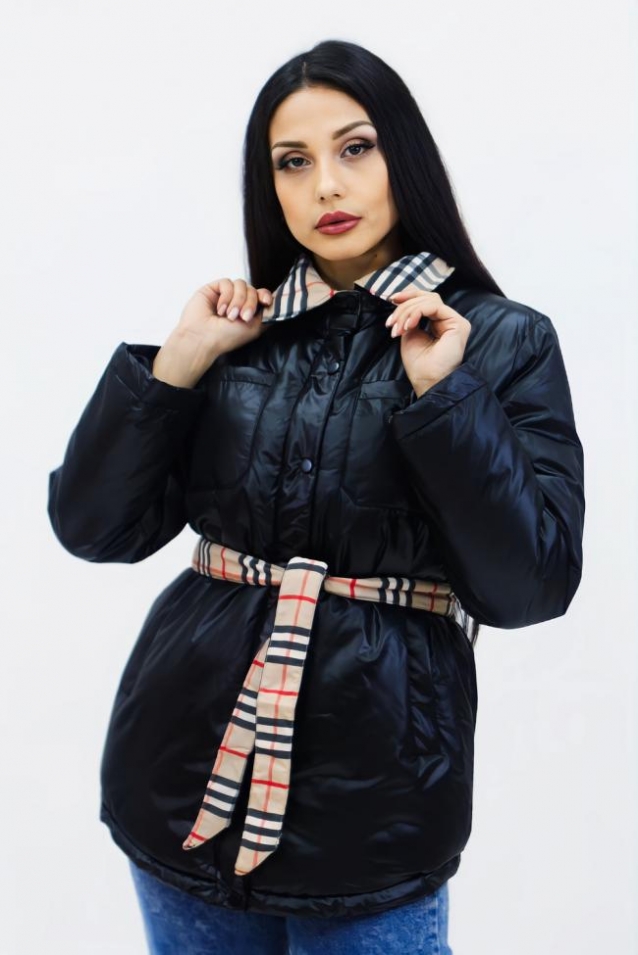 Демисезонная женская куртка весна осень Клетка 8762 (Черный)