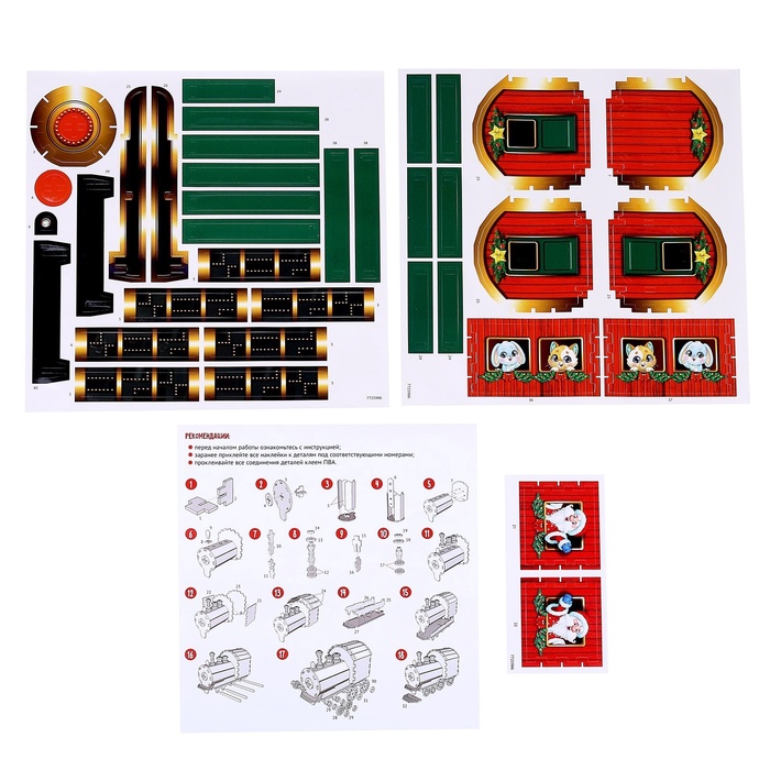Габариты: 26 x 24 x 3,5 В боксе: 44 набор Фасовка: по 1 набор Страна: Китай Состав: Бумага, дерево, краска Материалы: бумага, дерево, краска Индивидуальная упаковка: Цветная картонная коробка Сертификат: ЕАС Вид транспорта: Локомотив Для кого: Унисекс Возраст: От 6 лет Длина модели, см: 30 Количество элементов: 108 Тематика праздника: Новый год Материал: Дерево Тематика конструктора: Новогодняя, Транспорт С деревянным конструктором у вас получится собрать новогодний паровозик, потренировать внимательность и мелкую моторику рук. Как собрать модель