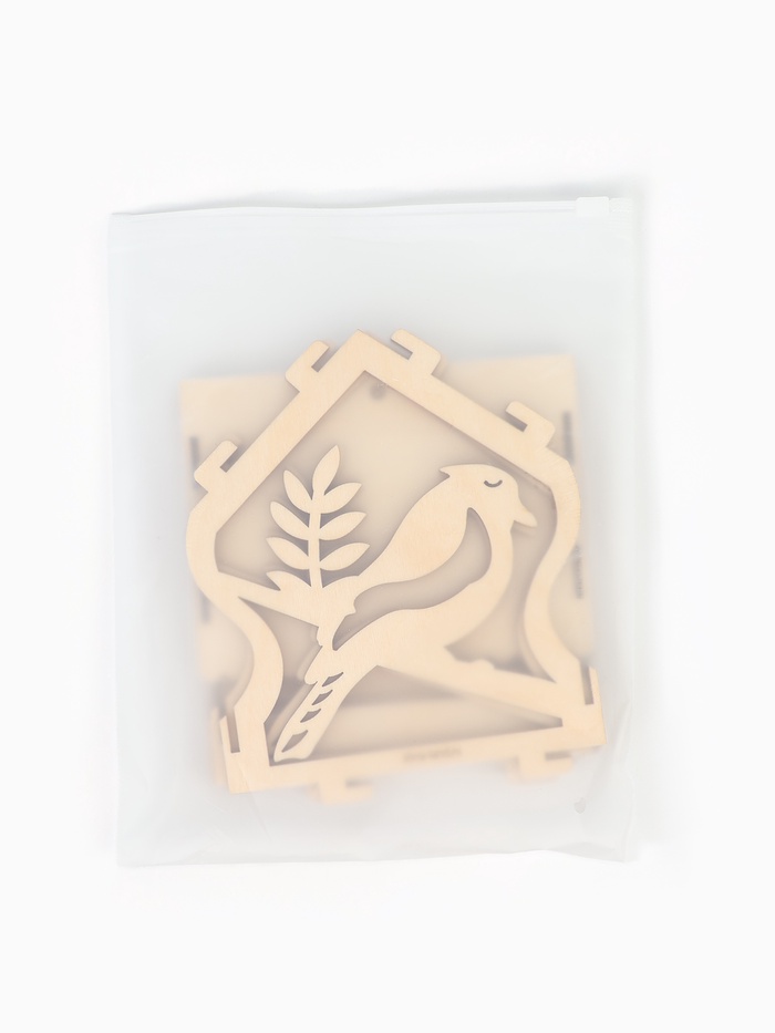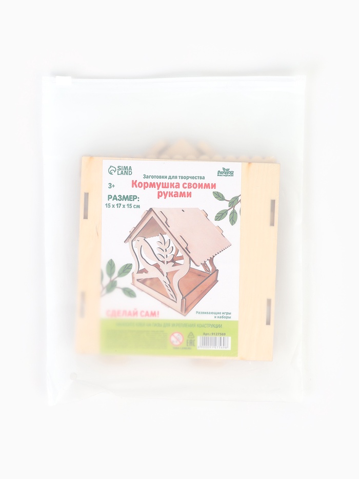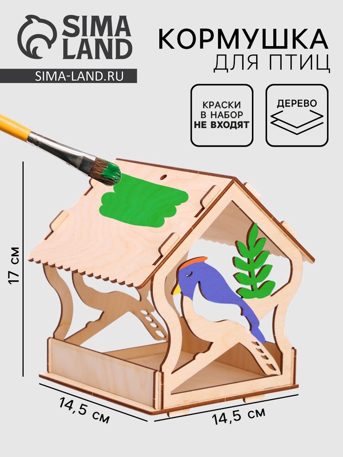 Заготовка для творчества выполнена из экологичного материала — древесины. Соберите кормушку вместе с ребёнком и заботьтесь о птицах холодной зимой.